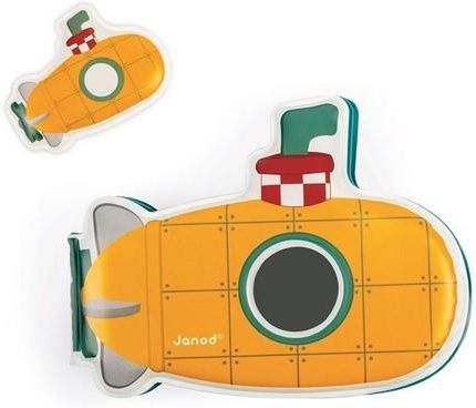 Janod Książeczka Aktywizująca Do Kąpieli Łódź a Książeczka aktywizująca do kąpieli Łódź podwodna francuskiej marki JANOD wykonana została z wodoodpornego, łatwego do czyszczenia, szybkoschnącego tworzywa. Opowiada o podróży łodzią podwodną przez podwodne krainy, zamieszkałe m.in. przez syreny czy wieloryby-jednorożce. Książeczka ma kształt łodzi podwodnej, a taką samą mniejszą łodzią, dołączoną do zestawu, można „płynąć” przez wskazane na poszczególnych stronach miejsca. Książeczka jest w pełni bezpieczna dla dziecka. Rozwija spostrzegawczość i pobudza wyobraźnię. To idealny prezent dla dziecka, które uwielbia opowiadać własne historie oraz wspaniały umilacz czasu, spędzanego w wannie. Zabawka została zaprojektowana we Francji. a Kolekcja do kąpieli JANOD to seria pięknych wodoodpornych zabawek dla maluszków. Składają się na nią m.in. sympatyczne zwierzaczki, puzzle, łódki, a nawet artykuły plastyczne. Dzięki nim czas kąpieli jest zawsze wypełniony radością i eksperymentami, a przy tym rozbudza dziecięcą wyobraźnię. Zabawka rozwija: pamięć i koncentrację chęć odkrywania i eksperymentowania wiek: 12 m + liczba elementów: 2 materiał: plastik design: Francja wymiary produktu: 15 x 2,2 x 11,3 cm waga produktu: 0,05 kg wymiary opakowania: 16 x 2,5 x 20 cm bezpieczeństwo i jakość: EN71-1; EN71-2, EN71-3; REACH a Janod od 1970 roku niezmiennie projektuje zabawki, które są synonimem innowacyjności, francuskiego designu i najwyższej jakości. Unikalne zabawki Janod tworzone są z drewna i innych doskonałych materiałów, a przede wszystkim z dziecięcych marzeń!  W obecnej ofercie Janod jest ponad 500 produktów, z których kluczowe to zabawki drewniane, puzzle, układanki i zabawki magnetyczne. Wszystkie produkty projektowane są we Francji przez własnych designerów. Stąd wiele motywów i wzorów powtarza się w kolekcjach, tworząc wyjątkowy, bajkowy świat Janod.  Wszystkie zabawki tworzone są z dbałością o szczegóły, z najwyższej jakości materiałów, bezpiecznych dla dzieci. Zabawki spełniają restrykcyjne normy bezpieczeństwa, takie jak EN71-1, EN71-2, EN71-3 oraz REACH.