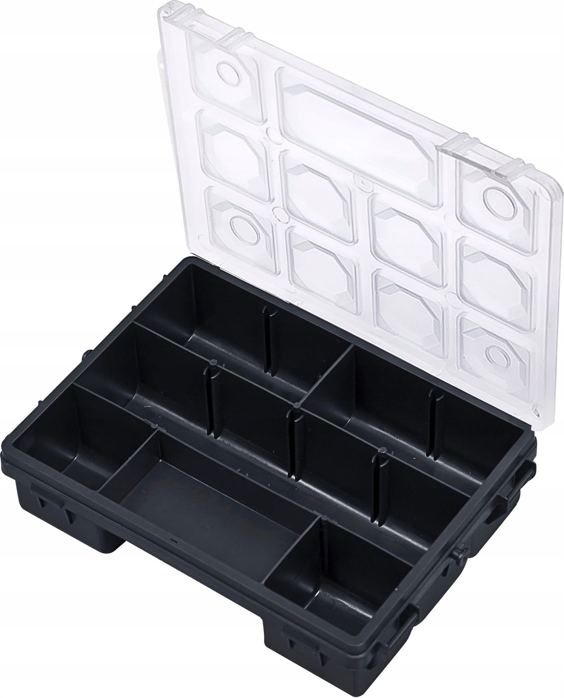 Organizer narzędziowy Tandem A 200 Organizer jest idealnym narzędziem, dzięki któremu jasno i przejrzyście posortujesz drobne oraz większe elementy zarówno w pracy, garażu jak i w domu.Organizer składa się z szesciu komór różnych rozmiarów.Sortownik posiada wygodny uchwyt oraz przeźroczystą pokrywę, dzięki której zawsze wszystko będzie doskonale widoczne i łatwo dostępne. Dwa organizery tego samego rozmiaru można łączyć ze sobą za pomocą specjalnych zatrzasków. Walizki skierowane pokrywami do siebie pozwalają na 100% zabezpieczenie zawartości. Polecany tam gdzie jest wymagany porządek i przejrzystość asortymentu. Dane techniczne: długość - 19cm szerokość - 14cm wysokość - 5cm materiał - tworzywo sztuczne