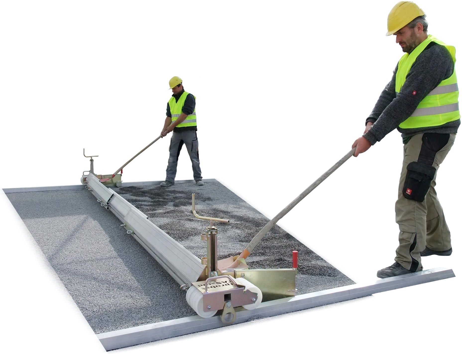 Listwa zgarniająca TAS-UNI 450 marki Probst sprawdzi się doskonale na średniej i dużej wielkości placach budowy. Niska waga umożliwia łatwe przenoszenie lub ciągnięcie łaty przez dwie osoby. Solidna konstrukcja i wysokiej jakości profile aluminiowe zapewniają odpowiedni nacisk na podłoże niezależnie od tego czy ciągniemy łatę ręcznie czy mechanicznie. Prace niwelacyjne mogą zostać wykonane szybko i dokładnie już za pierwszym przejściem. Listwa została wyposażona w rolki prowadzące z płynną regulacją wysokości i boczne stopnie dla operatora, by zwiększyć nacisk. Zestaw nie zawiera szyn do ściągania i rączek. Opis wariantu: Szerokość robocza 75 - 450 cm, ciężar 85 kg, zestaw zawiera łączenie daszkowe TAS-UNI-DP Zalety Wysoki profil pozwala na zebranie i rozprowadzenie nadwyżki materiału, Zestaw łańcuchów w komplecie sprawdzi się do pracy maszynowej, Dopasowanie wysokości można odczytać ze skali, Praktyczne zabieraki do oczyszczania prowadnic lub krawężników, Możliwość regulacji szerokości roboczej, Wskaźnik regulacji wysokości z podziałką i blokadą, Teleskopowa konstrukcja pozwala na płynną regulację szerokości w zakresie 0,75 – 4,5 m, Regulacja wysokości korbką przez podnoszenie lub opuszczanie rolek prowadzących, Wysoka solidność wykonania i wytrzymałość materiałów, co daje dużą wydajność pracy przy prostej obsłudze, Zaczep do ciągnięcia łopatą, rączki do przenoszenia i klapy boczne dociskane sprężynami ułatwiają obsługę, Specjalne zaczepy są doskonałe do przeciągania listwy łopatami lub łańcuchami. Zestaw zawiera Profil aluminiowy o długości 0,75 m, Profil aluminiowy o długości 1 m, Profil aluminiowy o długości 1,75 m, Profil aluminiowy o długości 2 m, Komplet rolek prowadzących, Dwa łańcuchy do ciągnięcia, Łączenie daszkowe TAS-UNI-DP (nr katalogowy 41000173). Poprzedni symbol 51000042. Parametry techniczne Szerokość robocza: 75 – 450 cm Ciężar.: 85 kg