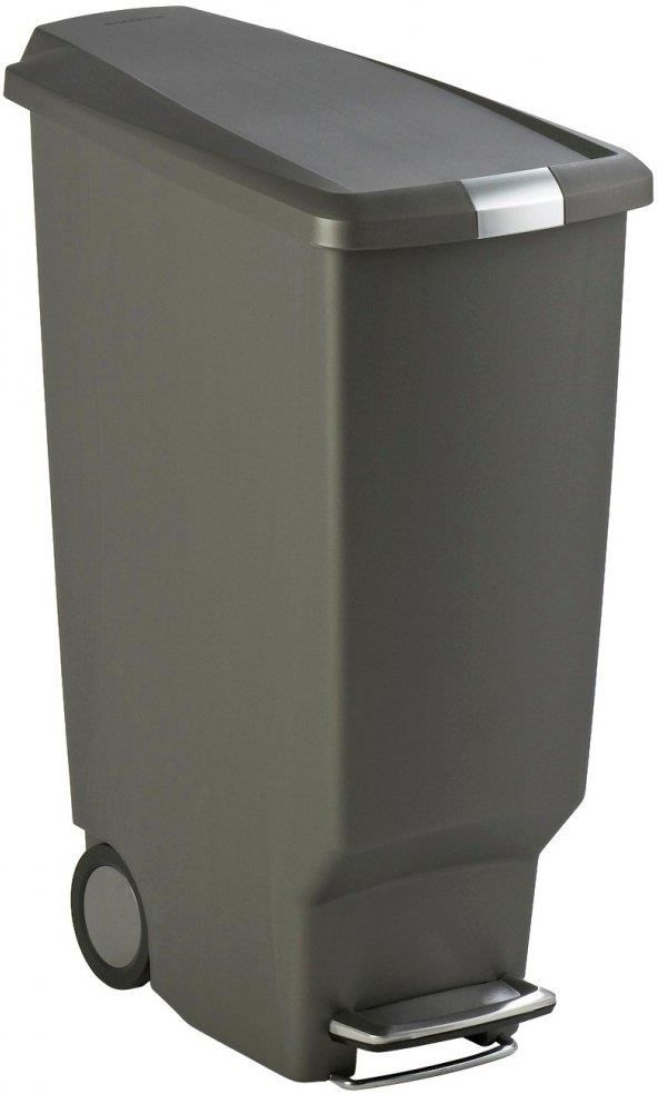 Kosz Slim amerykańskiej marki Simplehuman. Praktyczny pojemny kosz ma nietypowy wąski kształt umożliwiający postawienie go w miejscu, gdzie tradycyjny kosz się nie mieści. Produkt wykonano z wysokiej jakości tworzywa, a elementy takie jak pedał kosza ze stali nierdzewnej. Dodatkowym udogodnieniem dla użytkownika są kółka oraz wygodny uchwyt z tyłu kosza umożliwiające jego wygodne przemieszczanie. Blokada bezpieczeństwa zamkniętej pokrywy uniemożliwia dostęp do kosza, co czyni produkt bezpiecznym dla małych dzieci. Pedał kosza został poddany testowi 150 tysięcy naciśnięć, co równa się 20 użyciom dziennie przez 20 lat. Test wytrzymałości koszy pedałowych Simplehuman zaprezentowano na krótkim filmie, do którego odnośnik znajduje się u dołu strony. Materiał: tworzywo sztuczne, stal nierdzewna Kolor: szary Wymiary: 26 x 49 x 64 cm Pojemność: 40 l Projekt: Simplehuman