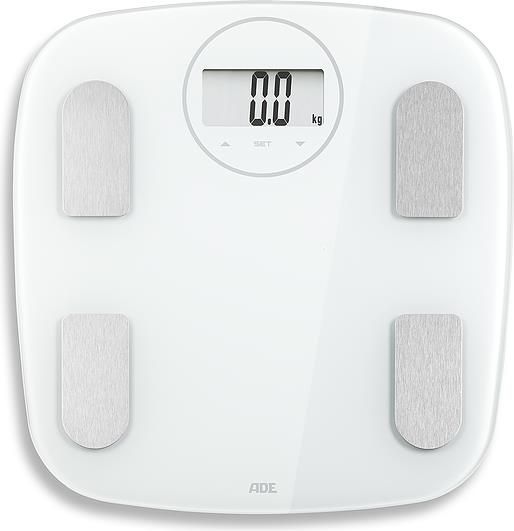 Waga łazienkowa elektroniczna szklana z pomiarem Specyfikacja techniczna Id produktu: 165207 Wysokość całkowita: 2,0 cm Kolor: biały Długość: 31,0 cm Szerokość całkowita: 30,0 cm Max. obciążenie: 180 kg Dokładność: 100 g Zasilanie: 2 x aaa Symbol producenta: ad-ba 2103-2 Materiał: szkło -------------------------------------------- Istotne informacje Możliwość wprowadzenia informacji o użytkownikach - do 12 osób Obliczanie wskaźnika masy ciała Za pomocą analizy impedancji bioelektrycznej waga wskazuje: Zawartość tkanki tłuszczowej z dokładnością do 0,1% Zawartość wody z dokładnością do 0,1% Zawartość masy mięśniowej z dokładnością do 0,1% Zawartość tkanki kostnej z dokładnością do 100 g Dzienne zapotrzebowanie kalorii Wskaźnik niskiego poziomu baterii Automatyczne wyłączanie Rozmiar ekranu LCD: 7,4 x 3,6 cm Jednostki: kg, lb, st Baterie w zestawie