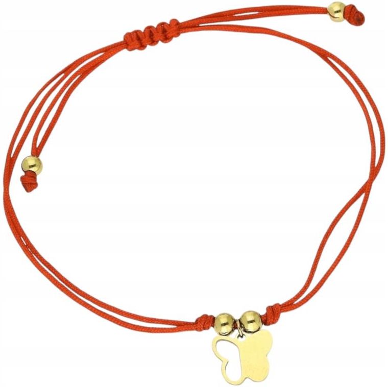 Bransoletka Damska Czerwona Nitka Ze Stali Chirurgicznej Pozłacana Konstancin-Jeziorna