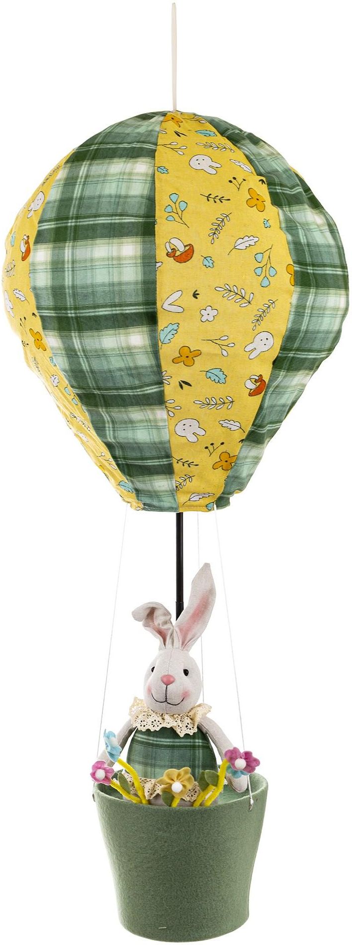 Dekoracja Królik W Balonie Kolekcja Natural to nieodłączny symbol Świąt Wielkanocnych. Figurki zostały zaprojektowane, aby sprawić by Twoje wnętrze wyglądało niezwykle efektownie. Doskonale nadają się jako ozdoba wnętrza, dodając mu świątecznego akcentu.Figurki są wielokolorowe i sprawiają wszystkim wiele radości. Bardzo ciekawe efekty dekoracyjne można osiągnąć, łącząc je ze sobą Cechy produktu Dekoracja o znakomitym designie Dekoracja znajdzie wiele zastosowań w użytkowaniu Stylowa i niebanalna ozdoba Podstawowe dane Kolor: wielokolorowy Material: metal,tworzywo sztuczne,tkanina Rozmiar :93x35x35 Galeria produktu