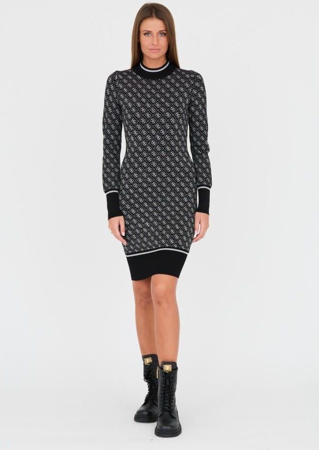 Czarna damska sukienka na co dzień, marki Guess. Wymiary modelki: wzrost 176 cm, biust 85 cm, talia 65 cm, biodra 92 cm. Modelka ma na sobie produkt w rozmiarze S.