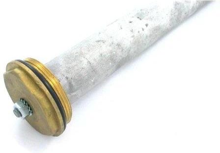 Anoda Magnezowa 22x800 3/4" Kospel Symbol: AMW.800 ----------------------------------------------------------------------------------------------------------- Anody magnezowe to stop fizjologicznie nieagresywnego magnezu, który rozpuszcza się zapobiegając powstawaniu korozji. Działanie różnic potencjałów elektrochemicznych materiału zbiornika oraz anody stanowi zabezpieczenie powierzchni emaliowanej. Zapobiega to występowaniu mikroubytków, na skutek utleniania, w wewnętrznej powłoce zbiornika. Dzięki elektrycznie przewodzącemu połączeniu ze stalą zbiornika, miejsca ewentualnych ubytków emalii stają się katodą i zamiast stali zbiornika rozpuszczeniu ulega anoda magnezowa, a korozja zbiornika ulega zatrzymaniu. Anoda magnezowa z powodu generowania prądu ochronnego oraz korozji własnej ulega przy tym stopniowemu rozpuszczeniu wymagając okresowej wymiany. Wymiana anody co 18-24 miesięcy jest wymogiem producentów zbiorników w celu zachowania gwarancji. Dane techniczne: Sposób mocowania: Korek 3/4" + Uszczelka Oring Długość: 800 mm Średnica anody: 22 mm Nr kat.: AMW.800 Zalety: Bezobsługowa Trwała (18 miesiecy) Przedłuża gwarancję na zbiornik Fabrycznie nowa Prosty montaż