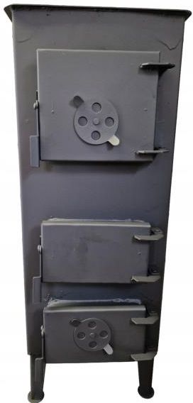 PIEC SZAMOTOWY PIEC Z RADIATOREM KOZA Polski piec – ATESTOWANY typu KOZA – CYGANEK wyłożony cegłą szamotową z dodatkowym RADIATOREM stanowiącym dodatkowe źródło ciepła, które w znaczący sposób wpływa na czas nagrzania pomieszczenia jak również długość akumulacji ciepła. - wykonany z blachy zimnowalcowanej grubości + 2mm dającej gwarancję długotrwałego użytkowania oraz stanowiącej solidne źródło ciepła - wypełniony 8 ma sztukami cegieł szamotowych kumuluje ciepło i sam piec daje moc do ogrzania powierzchni ponad 40 m2 ( kubatury ok. 100 m3 ); przy założeniu izolacji termicznej pomieszczenia. „Palta czym chce ta” – oczywiście w ramach rozsądku, piec tak naprawdę zamienia na energię cieplną wszystkie stałe źródła ognia. Ergonomia i wydajność PIECA pozwala w przeciągu 10-15 min nagrzać pomieszczenia do temperatury powyżej 20 stopni i więcej a dodatkowy RADIATOR proces ten przyspiesza oraz pracując razem z PIECEM zatrzymuje ciepło na długi czas. W chłodne dni potrzebny do ogrzania domków, garaży, tuneli, warsztatów, hal, sklepów, pomieszczeń gospodarczych, pomieszczeń budowlanych i wielu innych. BEZPIECZEŃSTWO PIECA – rzecz najważniejsza - piec atestowany, na życzenia każdego kupującego przesyłamy scan atestu - do użytkowania w pomieszczeniach stale użytkowanych przez ludzi - UWAGA: DLA ZAPEWNIENIENIA BEZPIECZEŃSTWA UŻYTKOWANIA W POMIESZCZENIACH OGRZEWANYCH PIECEM NALEŻY ZAPEWNIĆ STAŁĄ WENTYLACJĘ POWIETRZA, PRZEGLĄDAĆ KANAŁY KOMINOWE – RURY DLA ZAPEWNIENIA DROŻNOŚCI ORAZ POD RZADNYM POZOREM NIE OGRANICZAĆ DROGI ODEJŚCIA DYMU Z PIECA. PIEC MUSI BYĆ USTAWIONY W BEZPIECZNEJ ODLEGŁOŚCI OD ŁATWOPALNYCH RZECZY, ORAZ ZAŁA INSTALACJA RUR DYMOWYCH MUSI BYĆ ODIZOLOWANA CO GWARANTUJE BEZPIECZEŃSTWO. Dane techniczne PIECA Szerokość całkowita 30 cm Wysokość całkowita 75 cm Głębokość całkowita ( wraz z wyjściową rurą ) 42 cm Wylot spalin fi 12 cm Na bokach PIECA - 6 PROMIENNIKÓW ciepła. Na tylnej części znajduje się wylot kominowy – średnica 12 cm ŻELIWNY RUSZT TRZY PARY DRZWICZEK – ułatwiających obsługę Szufladka do wysypywania popiołu W DOLNYCH DRZWICZKACH - umieszczony jest regulator ciągu. Powłoka to farba żaroodporna (termalną) do 500°C. Dane techniczne RADIATORA Długość całkowita 65 cm Zespolony z kolankiem Wylot spalin fi 12 cm Wokół – zespolonych 11 sztuk PROMIENNIKÓW Powłoka to farba żaroodporna (termalną) do 500°C. AUKCJA DOTYCZY kompletu: PIEC + RADIATOR UWAGA! Pierwsze dwa palenia w nowym ogrzewaczu należy przeprowadzić, tak aby nie przekraczać 40 % mocy nominalnej urządzenia. Procesom tym może towarzyszyć nieprzyjemny zapach wypalającej się powłoki lakierniczej. Pomieszczenie należy bezwzględnie wietrzyć. Przykry zapach ustąpi po wstępnych paleniach.