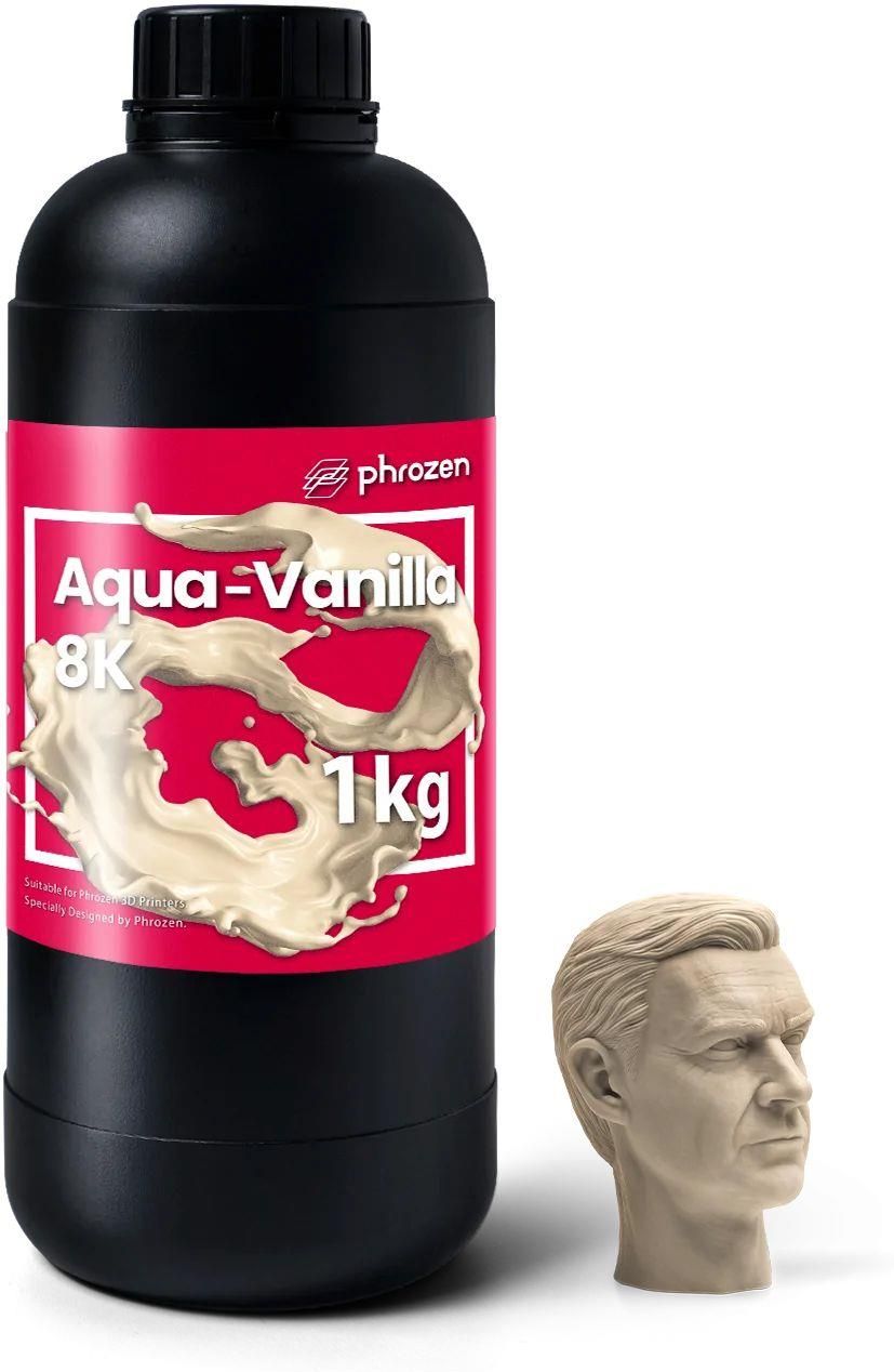 Phrozen Aqua 8K Resin Vanilla Benefits High precision and low shrinkage: Phrozen Aqua Vanilla 8K resin has the characteristics of low shrinkage, the printed objects will not be deformed or warped, and the printed objects will form stably.Moderate viscosity, low odor: Phrozen Aqua 8K resin has low viscosity, easy to handle and easy to clean, and will not have annoying odors that will affect the environment during printing.Wide range of printing applications: The printed product has high hardness and a toughness, suitable for printing figurines, and also suitable for product proofing. Specs Capacity: 1 kg per can Density: 1.10 g/cm3 Viscosity: 280-380cP Surface Hardness: 82 Shore D Tensile strength at break: 43 MPa Tensile modulus: 1730 MPa Elongation at break: 8 % Izod impact strength (notch): 10.00 J/m Heat distortion temperature (0.45 MPa): 77 ℃ Precautions Make sure to preserve resin at room temperature. Store in dark and ventilated conditions. After printing, please keep used resins in a closed & opaque bottle. Avoid mixing used resin with new resin. Keep resin away from kids and away from direct sunlight exposure. Wear gloves and masks when using resins. If this chemical contacts the skin or eye, wash with plenty of water. DO NOT dump resin. Please cure it and treat it as general plastic garbage.