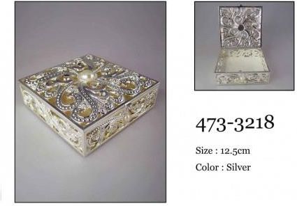 Puzderko, szkatułka,na biżuterię, srebrna, cyrkonie, ażurowa Szkatułka 473-3218 Modna szkatułka do przechowywania biżuterii – dekoracyjna i funkcjonalna zarazem. Prezentowany model wspaniale ozdobi każde wnętrze w stylu nowoczesnym, mieszanym retro czy glamour. Szkatułkę wykonano z wysokiej jakości metalu w kolorze srebrnym .Do środka zaglądamy unosząc wieczko do góry. Wieczko ażurowe zdobione cyrkoniami. Do przechowywania biżuterii przeznaczono jedną dużą przegródkę. Puzderko jest idealnym prezentem na wiele różnych okazji. UWAGA ! SZKATUŁKA Z GRAWEREM DOSTĘPNA NA INNEJ AUKCJI !