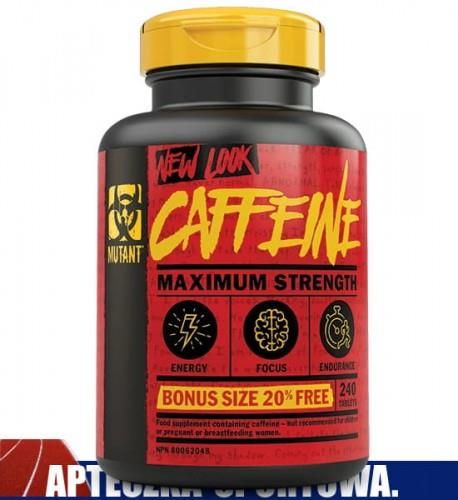 Kofeina jest najpopularniejszą substancją pobudzającą na świecie! Pomaga dodać energii podczas treningu, zniwelować głód, poprawić koncentrację umysłową i zwalczyć zmęczenie. MUTANT CAFFEINE dostarcza 200 mg farmaceutycznej jakości kofeiny bezwodnej na porcję. Charakterystyka działania: podnosi poziom gotowości organizmu do wysiłku zwiększa poziom koncentracji zwiększa poziom motywacji do intensywnych treningów Skład w 1 kapsułce: Kofeina bezwodna 200 mg Jak optymalnie stosować kofeinę w kapsułkach: Jako suplement diety stosować 1 tabletkę dziennie popijając szklanką wody. Aby ocenić indywidualną tolerancję, należy zażyć 1/2 tabletki popijając szklanką wody poprzez przełamanie tabletki na pół. Pij 8 do 10 szklanek wody dziennie. Kofeina ma działanie moczopędne.