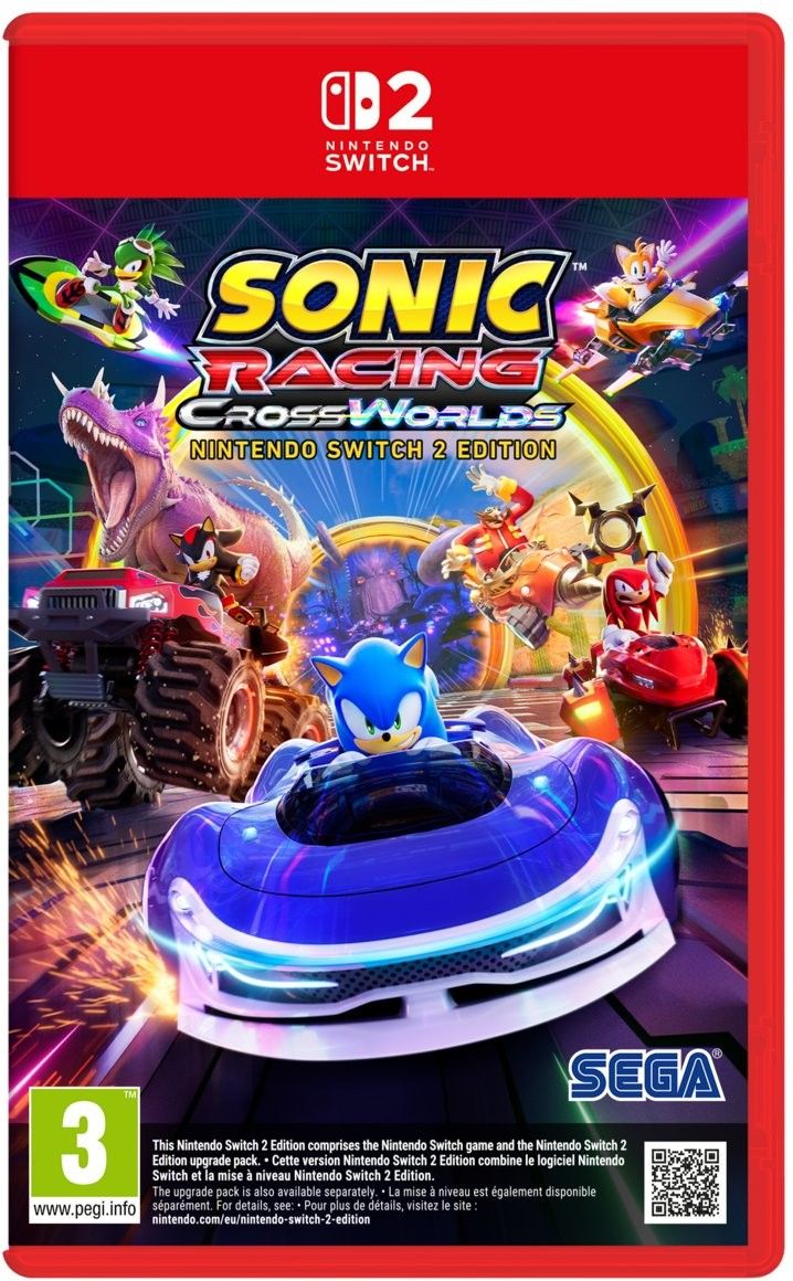 PRZEDSPRZEDAŻ! UWAGA! DATA PREMIERY / TERMIN WYSYŁKI MOŻE ULEC ZMIANIE! Zamów Sonic Racing: CrossWorlds w przedsprzedaży i zgarnij Werehog DLC! Sonic Racing: CrossWorlds Nintendo Switch 2 Edition zawiera pełną wersję gry na Nintendo Switch oraz aktualizację do wersji na Nintendo Switch 2. Driftuj poprzez wymiary! Ścigaj się po lądzie i morzu, w powietrzu, czasie i przestrzeni w grze Sonic Racing: CrossWorlds! Korzystaj z Ringów podróży i teleportuj się do różnorodnych wymiarów. Pędź do zwycięstwa w różnych trybach offline i online. Stwórz doskonałą maszynę, odblokuj gadżety, by zyskać przewagę, i korzystaj ze wzmocnień, aby zwyciężyć! Na miejsca, gotowi, teleportacja! Ścigaj się po 24 torach i teleportuj się do 15 CrossWorlds za pomocą Ringów podróży – ta unikalna mechanika przenosi kultowe postacie z uniwersów Sonica i SEGA do innych wymiarów. Niech nieobliczalność stanie się twoim sojusznikiem, gdy będziesz przeobrażać każdy wyścig! Ścigaj się z najlepszymi! Wybierz spośród 23 kultowych postaci z uniwersum Sonica – to największa kolekcja ze wszystkich gier wyścigowych z serii! Do wyboru, do koloru Mieszaj i łącz 45 oryginalnych pojazdów oraz 70 różnych gadżetów, aby mieć najlepsze asy w rękawie, zdobywać kolejne poziomy dla swojej bryki i stworzyć maszynę, która odpowiada twojemu stylowi jazdy. Zdobądź przewagę ze wzmocnieniami! Weź górę nad rywalami za pomocą 23 różnych wzmocnień. Wśród nich znajdziesz nie tylko powracających ulubieńców, ale i zupełnie nowe przedmioty, takie jak monster truck! Gra na wiele sposobów Zbierz znajomych, by zagrać w trybie podzielonego ekranu, lub rywalizuj ze społecznością z całego świata w rozgrywkach online dla maks. 12 graczy w trybach Grand Prix, Park Wyścigowy lub Atak Czasowy. SEGA. All rights reserved. SEGA is registered in the U.S. Patent and Trademark Office. SEGA, the SEGA logo, SONIC RACING and SONIC RACING CROSSWORLDS are registered trademarks or trademarks of SEGA CORPORATION. All other trademarks, logos and copyrights are property of their respective owners.