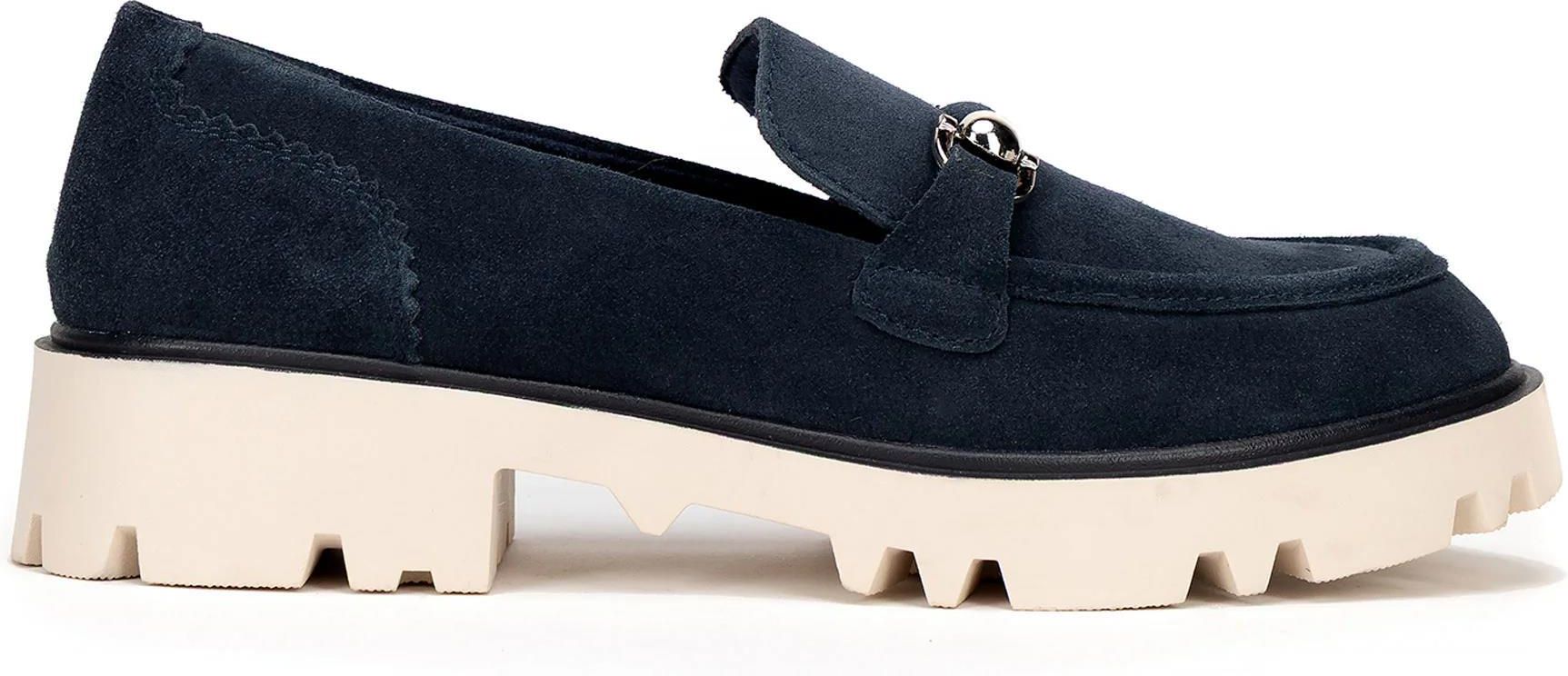 Zamszowe mokasyny z klamrą granatowe Konstancin-Jeziorna