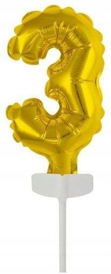 Balon Foliowy Mini Cyfra 3 Złota 7X12Cm Konstantynów Łódzki