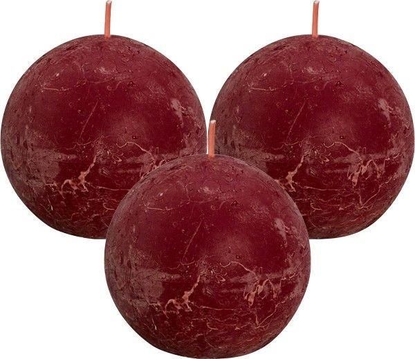 Bolsius Świeca kula rustykalna BOLSIUS Shine 25H 7,6CM 3szt. AKSAMITNA CZERWIEŃ Konstantynów Łódzki