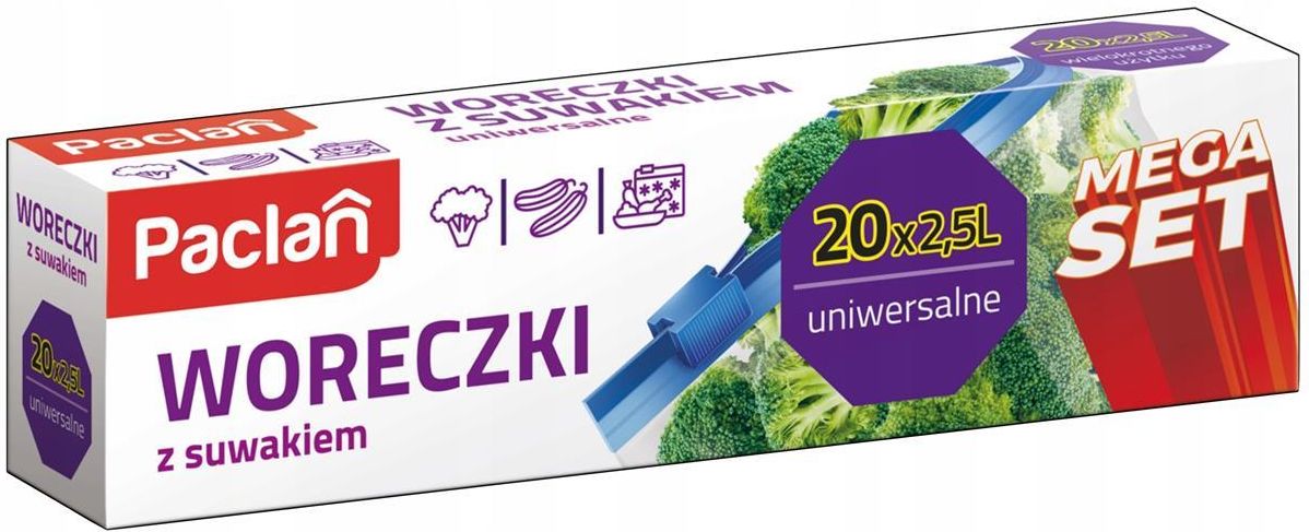 Woreczki Strunowe Z Suwakiem 2,5L x 20 sztuk Do Zamrażarki PACLAN Zestaw Hit Cenowy PACLAN Woreczki Strunowe z Suwakiem 2,5 L – Zestaw 20 sztuk Praktyczne woreczki wielokrotnego użytku renomowanej marki PACLAN umożliwiają wygodne przechowywanie, mrożenie oraz transport żywności i innych produktów. Dzięki szczelnemu zamknięciu z suwakiem zapewniają świeżość i porządek w każdej kuchni oraz podczas podróży. Główne cechy produktu Wielokrotnego użytku – trwały suwak umożliwia wielokrotne otwieranie i zamykanie bez utraty szczelności Pojemność 2,5 litra – wystarczająca na przechowywanie porcji owoców, pieczywa lub większych ilości produktów sypkich Doskonała szczelność – zapobiega wietrzeniu i utracie aromatu, nadaje się również do przechowywania płynów Łatwe zamykanie – charakterystyczny dźwięk “kliknięcia” daje pewność szczelnego domknięcia Uniwersalne zastosowanie – kuchnia, podróże, kosmetyki, dokumenty Markowy produkt PACLAN – jedna z najbardziej rozpoznawalnych marek akcesoriów kuchennych Zastosowanie i dla kogo? Dla osób dbających o porządek w kuchni i lodówce Dla rodzin przygotowujących domowe zapasy do zamrażarki Dla osób podróżujących – organizacja kosmetyków i akcesoriów w walizce Dla właścicieli małych gastronomii – pakowanie produktów na wynos Dla wszystkich, którzy potrzebują szczelnego i praktycznego opakowania do codziennego użytku Dane techniczne Pojemność pojedynczego woreczka: 2,5 litra Ilość w zestawie: 20 sztuk Materiał wykonania: tworzywo sztuczne wysokiej jakości Rodzaj zamknięcia: suwak strunowy ziplock Możliwość mrożenia: tak