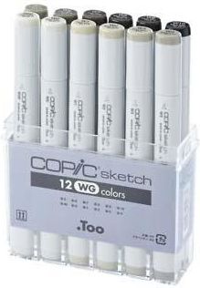 profesjonalne markery Copic Sketch do ponownego napełniania produkt wysokiej jakości marker dwukońcówkowy: pędziel duży, końcówka kaligraficzna ścięta pojemność markera: 2 ml zestaw 12 kolorów - Ciepłe Odcienie Szarości : W0 Warm Gray No.0 W00 Warm Gray No.00 W1 Warm Gray No.1 W10 Warm Gray No.10 W2 Warm Gray No.2 W3 Warm Gray No.3 W4 Warm Gray No.4 W5 Warm Gray No.5 W6 Warm Gray No.6 W7 Warm Gray No.7 W8 Warm Gray No.8 W9 Warm Gray No.9 opakowanie: przeźroczysty pojemnik akrylowy markery te można 12 razy napełnić całkowicie tuszem produkt japońskiej firmy Too/Copic