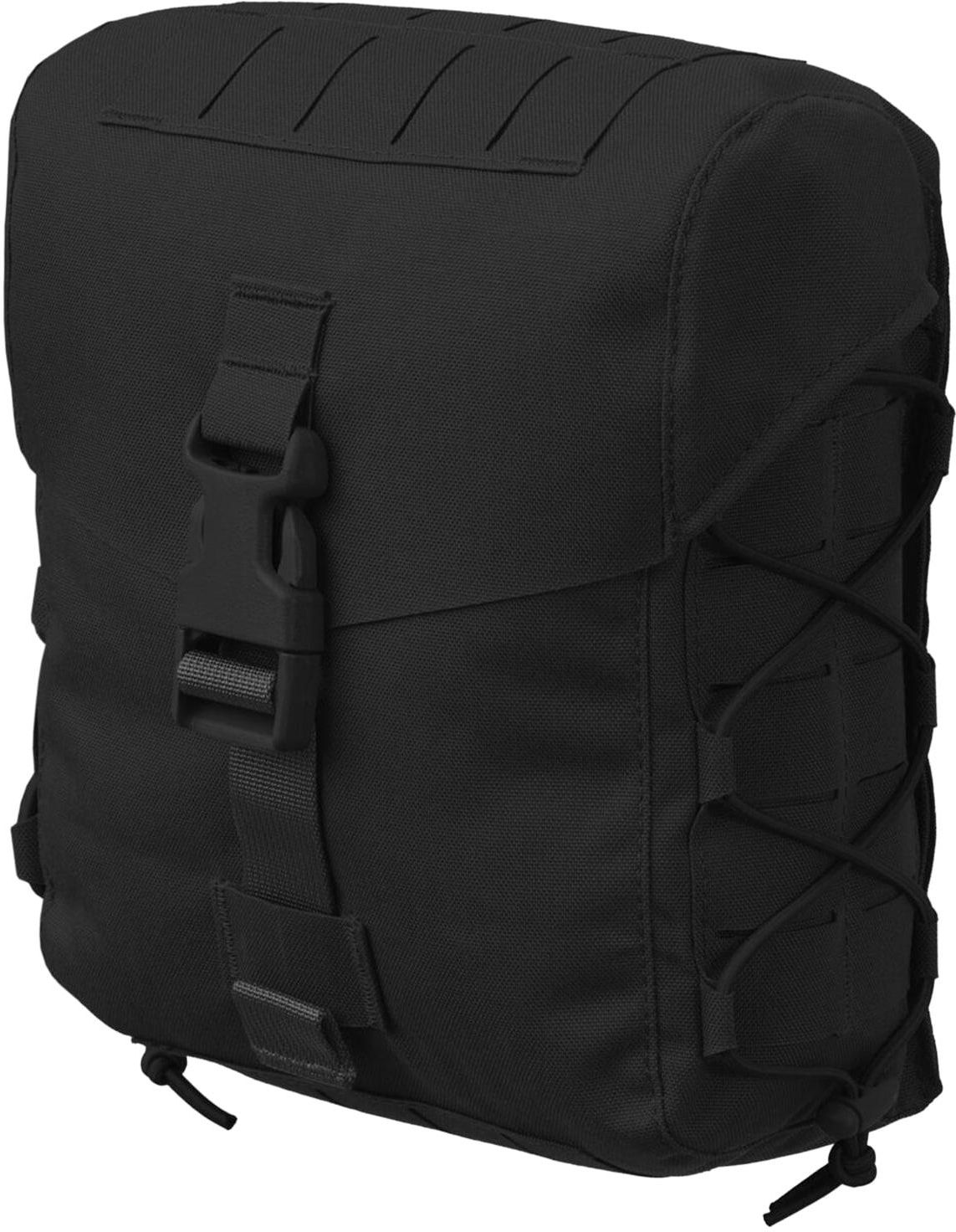 Duża kieszeń uniwersalna jest przeznaczona - przede wszystkim - do noszenia na tylnej części rękawa modułowego MOSQUITO® lub innego, dowolnego pasa. Duża objętość pozwala zapakować niezbędne wyposażenie, a ściągany komin zabezpiecza je przed zgubieniem. Nowością są: laserowo cięty system kompatybilny z MOLLE/PALS na zapinanej na klamrę klapie pudełkowej oraz dodany po bokach paracord, który zapewnia dopasowanie kształtu kieszeni do przenoszonej zawartości, a także umożliwia dopięcie dodatkowego wyposażenia. Kieszeń jest kompatybilna nie tylko z systemem modułowym MOLLE/PALS, ale także, dzięki szlufkom z paracordu, możliwy jest jej montaż na dowolnym pasie o szerokości do 45 mm. Cechy: