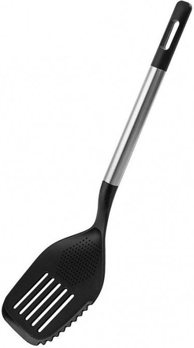 Łopatka perforowana Japandi Florina 34,7 cm Producent: Florina Kod produktu: 699638 Jeśli pragniesz, aby Twoje patelnie oraz garnki były traktowane z należytym szacunkiem i odwdzięczyły Ci się długowiecznością, to z pewnością potrzebujesz odpowiednich przyborów kuchennych, które zadbają o powłokę w garnkach. Seria przyborów kuchennych Japandi posiada części użytkowe wykonane z tworzywa, dzięki czemu wszystkie powłoki są bezpieczne – nie zostaną one uszkodzone nieodpowiednimi przyborami. Rączka wykonana została ze stali nierdzewnej, znajduje się w niej otwór, który pozwoli Ci na powieszenie przyborów na dostosowanych haczykach – zaoszczędzisz w ten sposób cenne miejsce w kuchennych szufladach. Przybory z tej serii doskonale dopasują się do garnków oraz patelni z tej samej serii. Cechy produktu łopatka do przewracania, część funkcyjna wykonana została z tworzywa PBT, uchwyt wykonany ze stali nierdzewnej 430#, w uchwycie znajduje się oczko, które umożliwi Ci zawieszenie na haczyku, część użytkowa odporna jest na temperaturę do 220 C, łatwa w utrzymaniu czystości, nie rysują powłoki na garnkach czy patelniach, niezbędne wyposażenie każdej kuchni. Wymiary produktu długość 34,7 cm, szerokość 9,6 cm, długość części roboczej 6,5 cm.