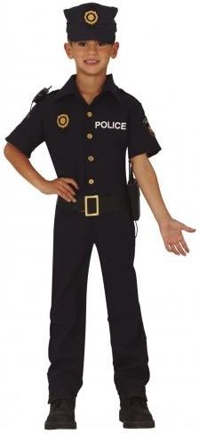 FBI, policja są to zawody które fascynują każdego małego chłopca.Teraz z łatwością wcielisz swoją pociechę w stróża prawa. Kostium Przystojnego Policjanta zawiera: kombinezon czapkę z daszkiem Materiał: tkanina poliestrowa. Granatowy jednoczęściowy kombinezon ze złotymi guzikami oraz atrapą paska. Uroku dodaje nadruk odznaki oraz napis POLICE.W pasie wszyta gumka, dzięki czemu przebranie dopasowuje się do sylwetki dziecka.Ważnym elementem stroju Policjanta jest czapka z daszkiem. Poczuj się jak Policjant dzięki oferowanemu przebraniu!