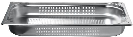 Pojemnik GN 1/1 Kitchen Line perforowany wys. 40 m Hendi Numer producenta: Hendi 807118 Perforowany pojemnik GN ze stali nierdzewnej z serii Kitchen Line marki Hendi to naczynie, które sprawdzi się w restauracjach, barach mlecznych, hotelach oraz innych lokalach czy zakładach gastronomicznych. Cechy i funkcje: - seria Kitchen Line, - wykonany ze stali nierdzewnej, - perforowany - wzmocnione narożniki, - oznaczenie rozmiaru GN na narożnikach, - może być używany w piecach konwekcyjnych, lodówkach, bemarach i podgrzewaczach, - gładkie krawędzie ułatwiają utrzymanie pojemnika w czystości, - może być używany w temperaturach od -40 st. C do 300 st. C, - można myć w zmywarce, - wygodne piętrowanie, - ustandaryzowany rozmiar GN: 1/1, - pojemność: 5,3 L, - grubość ścianki: 0,6 mm, - wymiary (DxSxW): 530 x 325 x 40 mm. W zestawie: - pojemnik GN Kod producenta: 1003479 Numer producenta: Hendi 807118 Perforowany pojemnik GN ze stali nierdzewnej z serii Kitchen Line marki Hendi to naczynie, które sprawdzi się w restauracjach, barach mlecznych, hotelach oraz innych lokalach czy zakładach gastronomicznych. Cechy i funkcje: - seria Kitchen Line, - wykonany ze stali nierdzewnej, - perforowany - wzmocnione narożniki, - oznaczenie rozmiaru GN na narożnikach, - może być używany w piecach konwekcyjnych, lodówkach, bemarach i podgrzewaczach, - gładkie krawędzie ułatwiają utrzymanie pojemnika w czystości, - może być używany w temperaturach od -40 st. C do 300 st. C, - można myć w zmywarce, - wygodne piętrowanie, - ustandaryzowany rozmiar GN: 1/1, - pojemność: 5,3 L, - grubość ścianki: 0,6 mm, - wymiary (DxSxW): 530 x 325 x 40 mm. W zestawie: - pojemnik GN Kod producenta: 1003479 Hendi