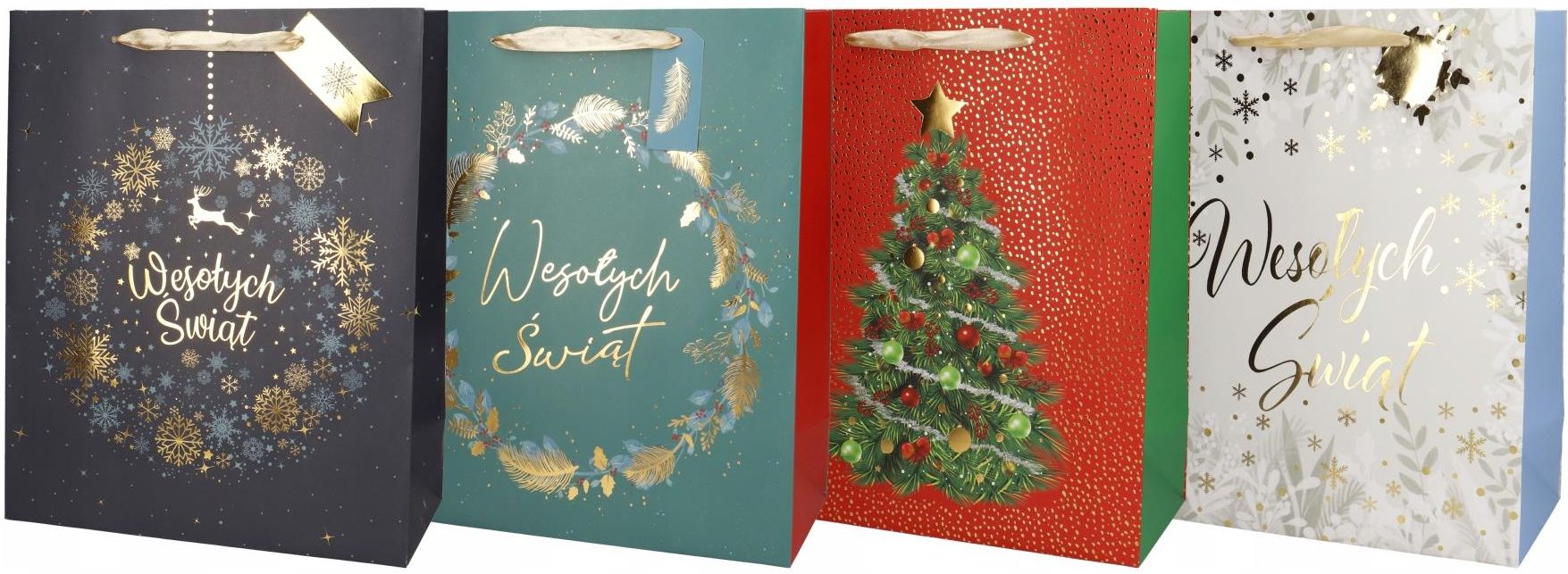 Incood 4X Torba Prezentowa Torebka Świąteczna Zimowa 26X32 Boże Narodzenie Konstantynów Łódzki