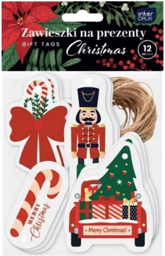 Interdruk zawieszka na prezenty ozdobna kształty świąteczna 12 sztuk mix Konstantynów Łódzki