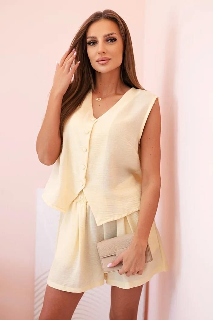 Komplet damski wiskozowy kamizelka na guziki i szorty żółty melanż - Uniwersalny Konstantynów Łódzki