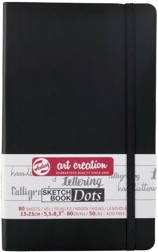 Szkicownik w kropki 13 x 21 cm - Talens Art - 80 k Szkicownik Art Creation z kremowym, bezkwasowym papierem z liniaturą w kropki. Sprawdzi się świetnie jako bullet journal. Nadaje się do wielu mediów, w tym ołówka, węgla drzewnego, grafitu, kredki i tuszu. Każdy szkicownik posiada lekko …