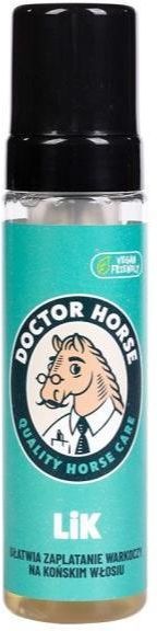 Kosmetyk dla Włosów Konia DOCTOR HORSES Ułatwia Zaplatanie Warkoczy 200ml Kosmetyk dla Końskich Włosów ⭐⭐⭐⭐⭐ ✅LiK - ułatwia zaplatanie warkoczy na końskim włosiu. Najważniejsze Informacje: Doctor Horse specjalnie dla Ciebie i Twojego konia opracował LiK preparat ułatwiający zaplatanie warkoczy, koreczków, siateczki na końskim włosiu. Recepturę oparł w 100% na wegańskich składnikach dbając jednocześnie o ich naturalne pochodzenie. LiK pomoże Ci scalić kosmyki włosów by nie uciekały z palców podczas zaplatania warkoczyków, koreczków, siateczek. Dodatkowo włosie nabierze intensywniejszego koloru i blasku. Dzięki sile naturalnej żywicy z akacji włosie jest podatne na stylizację co zapobiega pojawianiu się odstających włosków przy warkoczykach. Butelka z pompką 200 ml Pianka dla Konia ⭐⭐⭐⭐⭐ ✅Sposób użycia: Na czyste i suche pasmo włosów nanieść u nasady niewielką ilość pianki LIK. Palcami rozprowadzić od nasady aż po same końce włosów. Zwilżone pasmo włosów podzielić na kosmyki i zapleść warkoczyk lub siateczkę. Związać gumeczką i pozostawić do wyschnięcia. Trzymaj w pace lub skrzynce, nie zostawiaj na słońcu. Składniki: Woda żywica z akacji afrykańskiej, mieszanka środków powierzchniowo czynnych zapach
