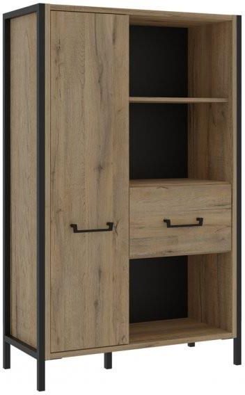 Regał ORIENTAL TREE HUDR422-M524 firmy FORTE Regał ORIENTAL TREE zachwyca prostą konstrukcją i wysoką funkcjonalnością. Wyposażony w szufladę i pojemną szafkę tworzy miejsce do przechowywania, a 3 otwarte przestrzenie to idealne miejsce do ekspozycji. Łatwy dostęp do zawartości zapewniają metalowe uchwyty, które tworzą doskonały duet z nóżkami. To właśnie one podkreślają loftowy charakter kolekcji ORIENTAL TREE. Opis systemu Nowoczesne i oryginalne połączenie dębu Bartex z czarnymi, nadającymi elegancij elementami to kwintesencja kolekcji mebli ORIENTAL TREE. Zastosowanie wyjątkowego podświetlenia ledowego w witrynach i szafkach pozwala wysunąć na pierwszy plan każdy szczegół i nadać niepowtarzalny charakter wnętrza salonu czy jadalni, w którym wszystko oparte jest o harmonię i współczesną naturalność. Oryginalny design podkreślają szlachetne, metalowe uchwyty oraz stylizowane nóżki, a pojemne regały, szafki czy obszerne biurko pomogą stworzyć funkcjonalną przestrzeń. Meble w stylu industrialnym to doskonały wybór dla wielkomiejskiego stylu życia i zapracowanych osób, które szukają w swoim mieszkaniu chwil pełnych relaksu i odpoczynku. Regał ORIENTAL TREE HUDR422 idealnie pasuje do pozostałych mebli z kolekcji ORIENTAL TREE, które mogą Państwo zakupić na naszych innych aukcjach. Mebel w paczkach przeznaczony do samodzielnego montażu (akcesoria montażowe wraz z czytelną instrukcją w komplecie). Wybarwienie (M524) Dąb Bartex / czarny Wymiary: szerokość: 94,1cm wysokość: 151,5cm głębokość: 41,5cm Materiał wysokiej jakości płyta meblowa / metal Dodatkowe informacje Regał o wymiarach szerokość 94,1 cm, wysokości 151,5 cm i głębokości 41,5 cm sprawdzi się w mniejszym i większym pomieszczeniu Mebel składa się z 3 otwartych wnęk, 2 szafek i 3 półek, tworząc idealną przestrzeń do przechowywania i ekspozycji Efektowne połączenie dekoru Dąb Bartex i koloru Czarnego przyciąga wzrok Maksymalne obciążenie blatu do 20 kg Maksymalne obciążenie półek do 5 kg Montaż do ściany wymagany (okucia w zestawie) GALERIA ZDJĘĆ PRZYKŁADOWA ARANŻACJA KOLEKCJI ORIENTAL TREE