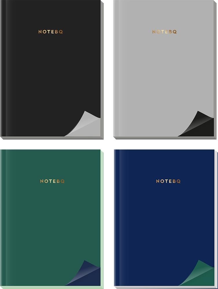 NOTEBQ to wysokiej jakości minimalistyczne, a zarazem stylowe notatniki wykonane z dbałością o każdy szczegół. Miła w dotyku okładka soft touch ze złotymi zdobieniami. Kolorowy zadruk wewnątrz okładki i zadruk po bokach. W środku zadruk w kratkę na papierze 90 g. Dostępny w 4 wersjach kolorystycznych: czarnej, zielonej, szarej i granatowej. Parametry produktu: - Format: A5 - Ilość kartek: 80 - Rodzaj: notatnik - Papier: 90 g - Zadruk środka: kratka - Okładka: soft touch ze złotymi zdobieniami - Kolory: czarny, zielony, szary, granatowy