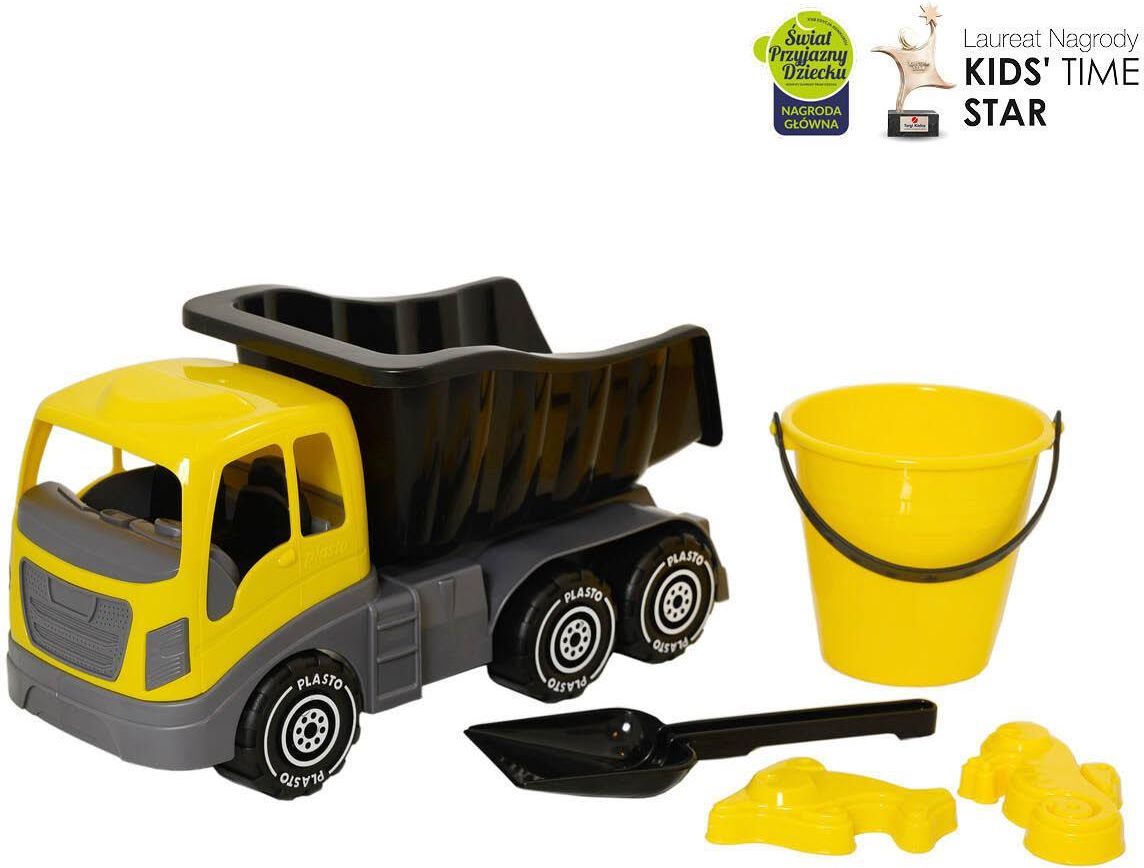Zestaw Plasto z wywrotką i zabawkami do piasku zaprasza do kreatywnej zabawy! Zawiera 5 części. Wysokiej jakości wywrotka, wiadro, łopatka i dwie foremki do piasku. Długość wytrzymałej wywrotki 40 cm. Objętość wiadra 1,2 l. Długość łopatki 25 cm. Zalecany wiek 1+. Wyprodukowano w Finlandii. Plasto to kultowa firma w Skandynawii. Powstała w 1954 roku i od 70 lat produkuje wysokiej jakości wytrzymałe zabawki z plastiku i bioplastiku. Fabryka znajduje się w Mariehamn na Wyspach Alandzkich między Finlandią a Szwecją. Marka dzięki konsolidacji z Tactic Games Oy jest dostępna dla polskich klientów. Produkty Plasto® otrzymały w Polsce wiele prestiżowych nagród -2024 - Seria I am Green! Wyróżnione w konkursie Zabawka Roku -2025 - Seria I am Green! Nagroda główna Targów Kids Time - Kids Time Star -2025 - Nagroda Główna w Konkursie Świat Przyjazny Dziecku organizowanym przez Komitet Ochrony Praw Dziecka Budowanie bezpiecznych zabawek jest naszym priorytetem. W naszych zabawkach nie znajdziesz ostrych krawędzi i małych części. Używamy bezpiecznych, zatwierdzonych przez UE, wytrzymałych surowców wysokiej jakości (głównie polietylenu i polipropylenu). Zabawki są zaprojektowane tak, aby części były ze sobą zatrzaśnięte (brak luźnych elementów). Koła są łączone pod ciśnieniem powietrza (brak klejów i żywic). To wszystko sprawia, że nasze zabawki wytrzymują dekady w przedszkolach i prywatnych domach w trudnych warunkach przyrody w całej Skandynawii. Plasto dba o środowisko poprzez stały rozwój własnej oferty biotworzyw. Nasza kontrola jakości zapewnia, że każda mniej niż idealna część wyprodukowana podczas procesu produkcyjnego jest granulowana i ponownie wykorzystywana w naszej własnej produkcji. Nasza produkcja jest też częściowo zasilana energią słoneczną, a fabryka i biuro są ogrzewane ciepłą wodą, która powstaje podczas produkcji.