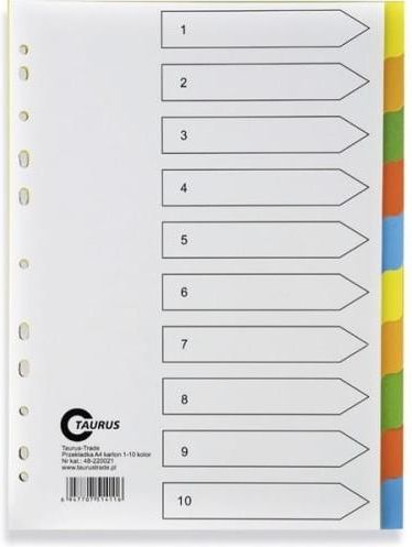 Taurus Przekładki A4 Kartonowe 1-10 Numeryczne Białe Z Kolorowymi Indeksami Mylar 48-220021 (TAU259) Koprzywnica