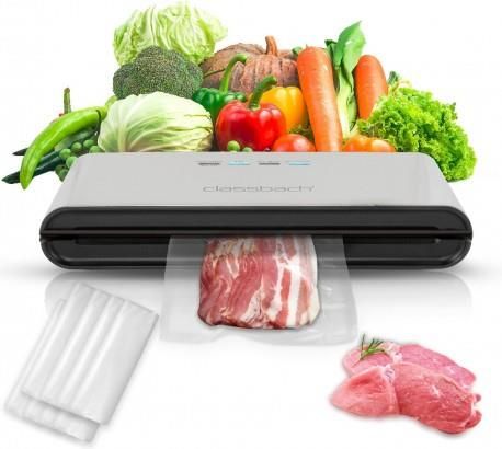 Zgrzewarka do pakowania próżniowego Classbach C-VK 4000 Classbach C-VK 4000 to urządzenie w pełni automatyczne, solidne a dzięki dotykowemu panelowi sterującemu bardzo łatwe w obsłudze. Urządzenie jednocześnie zgrzewa i separuje. Temperatura jest monitorowana elektronicznie. Zgrzewarka korzysta z czułej pompy próżniowej której wydajność to 12 litrów / min. Urządzenie jest niezawodne, wydajne, a do tego trwałe dzięki solidnej obudowie z elementami ze stali nierdzewnej. Niebanalny design sprawia, że zgrzewarka doskonale pasuje do nowoczesnej aranżacji kuchni. C-VK 4000 umożliwia bezpieczne przechowywanie produktów bez konserwantów, nawet 8x razy dłużej! Jednocześnie witaminy i składniki odżywcze zostają zachowane. Zgrzewarka jest idealna również dla produktów sezonowanych i marynowanych - dzięki próżni zachowujemy intensywny aromat sezonowych owoców oraz warzyw. Urządzenie jest niezbędne do przygotowania potraw metodą Sous Vide - bez wysychania i bez utraty składników odżywczych podczas przygotowywania. Najważniejsze cechy zgrzewarki próżniowej Classbach C-VK 4000: W pełni automatyczne urządzenie do pakowania próżniowego Obudowa ze stali nierdzewnej 6 kontrolek Doskonałe do dzielenia dużych ilości produktów spożywczych na mniejsze porcje Bezpieczne przechowywanie bez stosowania konserwantów Szerokie i wytrzymałe zamknięcie hermetyczne daje pewność niezawodnego magazynowania Moc zasysania: 12 l/min. W pełni automatyczne, jednoczesne zgrzewanie i separowanie Czuła pompa próżniowa oraz elektroniczny monitoring temperatury doskonale sprawdzają się w przypadku delikatnych produktów żywnościowych Możliwość stosowania dostępnej w handlu folii strukturalnej w rolce oraz strukturalnych torebek plastikowych Maksymalna szerokość folii 30 cm, długość według potrzeb W komplecie 18 profesjonalnych, hermetycznych torebek (10 sztuk o wymiarach 22x30 cm i 8 sztuk 28x40 cm, dostępnych również jako wyposażenie dodatkowe) Torebki nadają się do gotowania w wodzie oraz użycia w kuchence mikrofalowej Miejsce na przewód zasilający w podstawie urządzenia zapewniające wygodne składowanie Stabilność dzięki gumowanym nóżkom Zasilanie: 220-240 V, 50Hz, 120W Dlaczego warto kupić zgrzewarkę próżniową Classbach C-VK ? Oszczędność i zdrowie Idealny produkt dla każdego, kto chce szybko dzielić produkty spożywcze na mniejsze porcje i zależy mu na bezpiecznym przechowywaniu żywności. Zapakowaną w ten sposób świeżą żywność przechowasz nawet 8 razy dłużej. Niezbędna do Sous Vide Urządzenie jest niezbędne do przygotowania potraw metodą Sous Vide - bez wysychania i bez utraty składników odżywczych podczas przygotowywania. Wydajna Zgrzewarka korzysta z czułej pompy próżniowej której wydajność to 12 litrów / min. Idealna na prezent Urządzenie posiada eleganckie opakowanie, dzięki czemu idealnie sprawdzi się, jako prezent! Wymiary zgrzewarki: Wymiary (ok. szer. x wys. x gł.) i waga Urządzenie: 380 x 63 x 155 mm; 1.55 kg Opakowanie: 385 x 210 x 75 mm; 1.69 kg Produkt został odznaczony certyfikatem FOCUS - TEST DEUTSCHLANDS BESTE Certyfikat TEST DEUTSCHLANDS BESTE został przyznany na podstawie badań przeprowadzonych przez „Germanys best household electronics”. W ramach testu porównane zostały produkty z ponad 20 000 marek z 274 segmentów rynkowych. Celem wyróżnienia „Focus” jest wskazywanie produktów cieszących się największym uznaniem konsumentów. Certyfikat przyznany jest na podstawie badań niemieckiego rynku i potwierdza wysoką jakość produktów a także świadczy o dużym zaufaniu konsumentów i renomie marki.