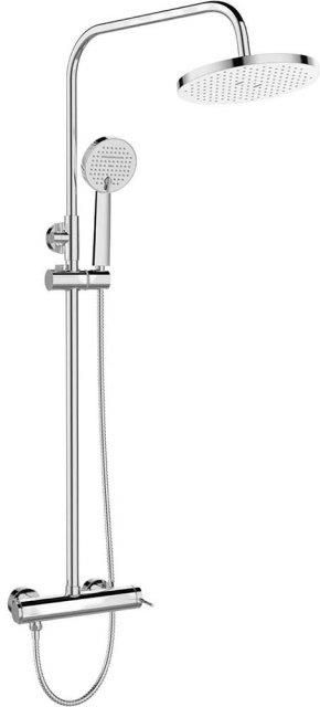 Deszczownia z baterią natryskową KALITEA chrom zestaw prysznicowy Chromowana deszczownia KALITEA to połączenie elegancji i funkcjonalności. Wyposażona w smukłą deszczownicę slim, baterię z funkcją oszczędzania wody oraz wygodną słuchawkę z regulowanym uchwytem, zapewnia komfort codziennego prysznica i nadaje łazience ponadczasowego charakteru. Kompletny zestaw prysznicowy z deszczownicą i baterią Specyfikacja Typ baterii: natryskowa, jednouchwytowa Kolor: chrom (połysk) Montaż: ścienny, natynkowy Regulowana wysokość kolumny: 88–134 cm Wysokość całkowita: 88 cm Szerokość: 27 cm Długość: 50 cm Deszczownica: Ø 22,4 cm, ABS, slim, z systemem anti-calc Słuchawka prysznicowa: Ø 10,5 cm, ABS, 2-funkcyjna (normalny, kaskada) Uchwyt słuchawki: suwakowy regulowany przyciskiem Rodzaj przełącznika: ręczny Wąż prysznicowy natryskowy: stalowy, podwójny splot, długość 150 cm, kolor czarny Końcówki węża: heksagonalna i stożkowa Mieszacz: ceramiczny 35 mm Perlator: oszczędzający wodę, z tworzywa sztucznego System szybkiego montażu: nie Kod produktu: AU-72-001-V Seria: KALITEA Funkcjonalne cechy deszczownicy prysznicowej KALITEA Cechy Smukła deszczownica slim ogranicza skapywanie wody po zakręceniu, co zmniejsza zużycie. System anti-calc w deszczownicy i słuchawce ułatwia czyszczenie i chroni przed kamieniem. Technologia Ecosave w perlatorze pozwala zaoszczędzić do 50% wody bez utraty komfortu. Regulowana wysokość kolumny pozwala dopasować zestaw do każdego użytkownika. Dwa tryby strumienia w słuchawce zapewniają różnorodne wrażenia podczas kąpieli. Dlaczego warto wybrać zestaw prysznicowy KALITEA? Zalety Oszczędność wody – technologia Ecosave i deszczownica slim ograniczają zużycie. Elegancki design – chrom w połysku pasuje do nowoczesnych i klasycznych łazienek. Komfort użytkowania – regulowany uchwyt i dwa tryby strumienia w słuchawce. Łatwe czyszczenie – gumowe dysze z systemem anti-calc. Trwała konstrukcja – stal nierdzewna, ABS i ceramika zapewniają długowieczność. Uniwersalny montaż – pasuje do większości instalacji natynkowych. Kompletne wyposażenie – wszystko w jednym zestawie, gotowe do instalacji. Gdzie sprawdzi się chromowana deszczownia KALITEA? Zastosowanie Prysznice typu walk-in i kabiny prysznicowe Małe łazienki, gdzie liczy się ergonomia i funkcjonalność Łazienki nowoczesne, klasyczne i minimalistyczne Projekty, w których ważne są oszczędność wody i elegancki wygląd Wnętrza z białą ceramiką, marmurem lub drewnem