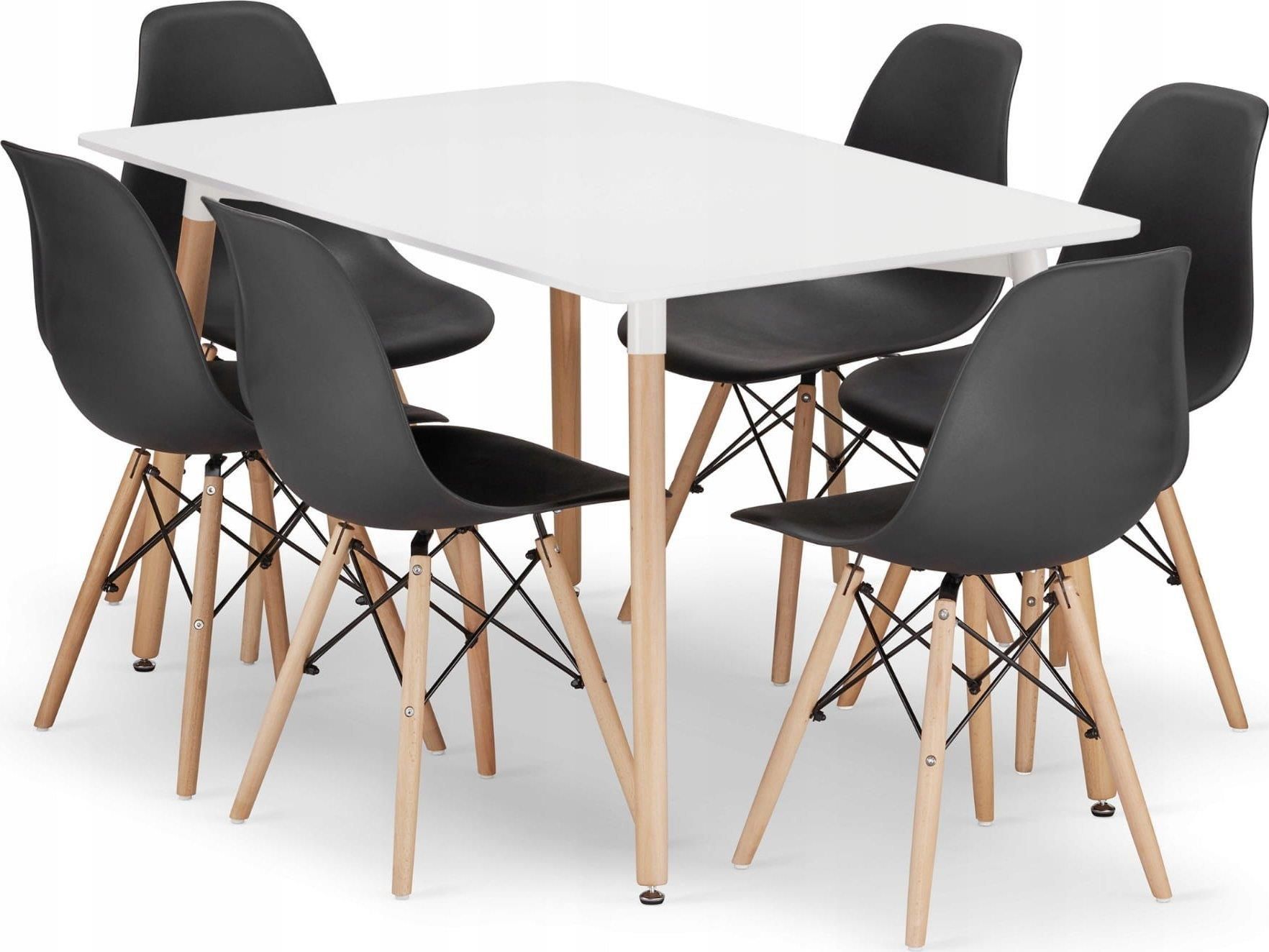 Leobert Zestaw Stół Prostokątny Adria 120X80 Biały + 6 Krzeseł Osaka Czarne Korfantów