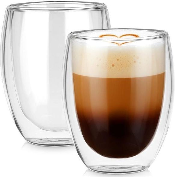 Zestaw dwóch szklanek termicznych z podwójną ścianką, o pojemności 370 ml. Świetnie sprawdzą się do picia kawy lub herbaty. Serwowane w nich napoje prezentują się bardzo efektownie. Zestaw dwóch szklanek termicznych - Zestaw dwóch szklanek termicznych z podwójną ścianką w nowoczesnym designie. Szklanki zapewnią efektowne serwowanie napojów. Każda szklanka ma wymiary 10 x 10 x 11,5 cm i pojemność 370 ml. Szklane z podwójną szklanką - Wykonane z podwójnego szkła borokrzemowego, które utrzymuje temperaturę napoju przez długi czas. Szkło jest przezroczyste. Ciepłe napoje nie schładzają się szybko, a napoje zimne, pozostają dłużej chłodne. Uniwersalne zastosowanie - Świetnie sprawdzą się do picia kawy np. macchiato, caffe latte, americano oraz innych typów kawy lub herbaty. Serwowane w nich napoje prezentują się bardzo efektownie. Odporne na temperaturę - Zaletą szklanek termicznych jest zwiększona odporność na wysokie i niskie temperatury. Szklanki są odporne na temperaturę od -20°C do +100°C. Wygodne korzystanie - Posiadają ergonomiczny kształt, który zapobiega ich wyślizgnięciu się z dłoni podczas użytkowania. Szklanki mimo podwójnej ścianki są lekkie. Komplet dwóch szklanek termicznych z podwójną ścianką. Szklanki mają nowoczesny design. Dzięki podwójnej ściance gorące napoje nie będą nas parzyły w ręce i szklanki pozwolą na utrzymanie dłużej ciepłej temperatury, to samo dotyczy chłodnych napojów. Idealne do picia ulubionej kawy, herbaty i innych napojów. Szklanki są świetnym pomysłem na prezent. Oryginalny produkt marki Vilde. Wyprodukowano zgodnie z europejskimi standardami. Nie zaleca się myć w zmywarce ze względu na mikrootwór technologiczny, przez który mogą dostać się do przestrzeni między ściankami kropelki wody wtłaczane pod ciśnieniem przez dysze zmywarki.