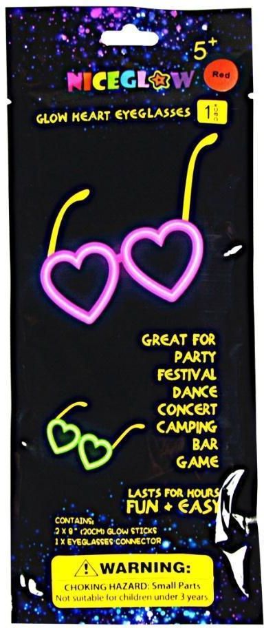 Okulary z serii glow stick - świecące w ciemności neonowym światłem - aktywacja światła poprzez wygięcie pałeczek. Idealny dodatek do stroju. Rozmiar uniwersalny. 1 sztuka w opakowaniu. Oprawa: blister Format: 105x266 mm