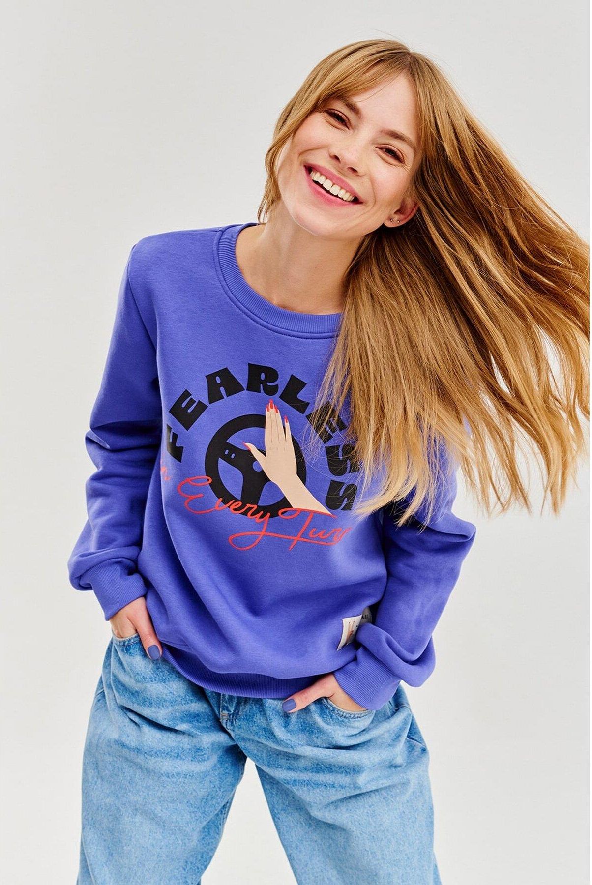 Bluza FEARLESS IN EVERY TURN – walcz o marzenia na każdym kroku z NEONAIL i NAOKO FEARLESS IN EVERY TURN to niebiesko-fioletowa bluza bez kaptura dla miłośniczek odważnego manicure. Doskonale koresponduje barwnie z lakierem hybrydowym Adventure Aura. To świetna propozycja dla kobiet lubiących wyzwania. Grafika z dłonią na kierownicy, symbolizującą odwagę i determinację, na pewno Ci się spodoba. Skład: 90% bawełna, 10% poliester. Nie czekaj! To limitowany produkt, stworzony we współpracy z marką NAOKO, dostępny w rozmiarach XS-XL, zapakowany w designerskie pudełko, idealny na prezent. Stop stereotypom na temat kobiet – bluza NAOKO jest elementem kampanii NEONAIL „Jestem sobą, więc wybieram NEONAIL”. 10% ze sprzedaży każdej bluzy przekażemy na Fundację Kosmos dla Dziewczynek. Odważ się być sobą i pomagać w tym innym! Modelka ma 172 cm wzrostu oraz ma na sobie rozmiar S