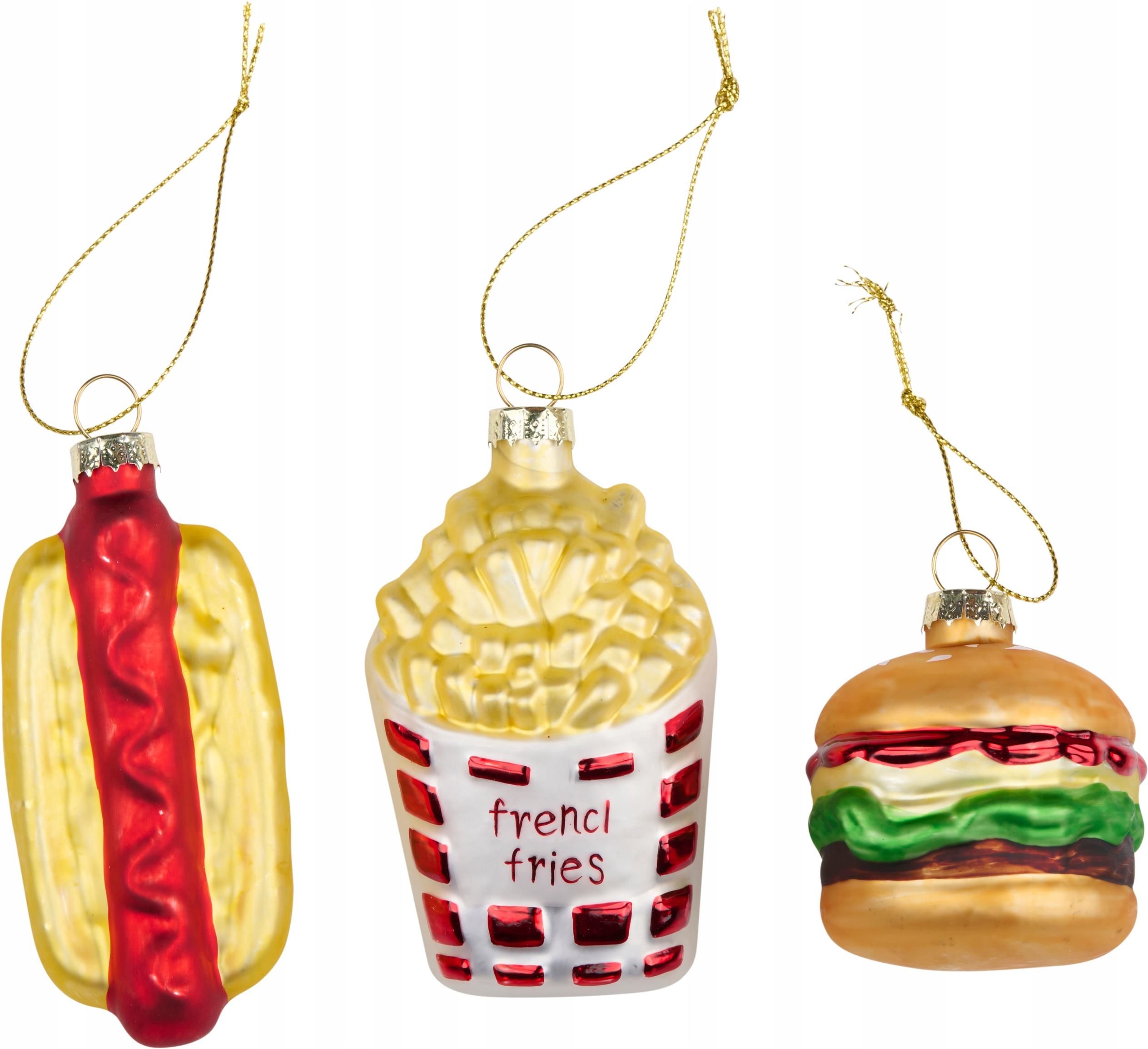 Bombki choinkowe z zawieszkami fastfood 10x7x3cm kpl. 3 szt. szkło Articasa Kórnik