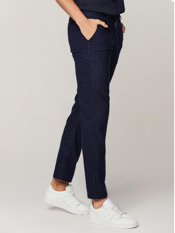 Ciemnogranatowe chinosy męskie w prążek Kórnik