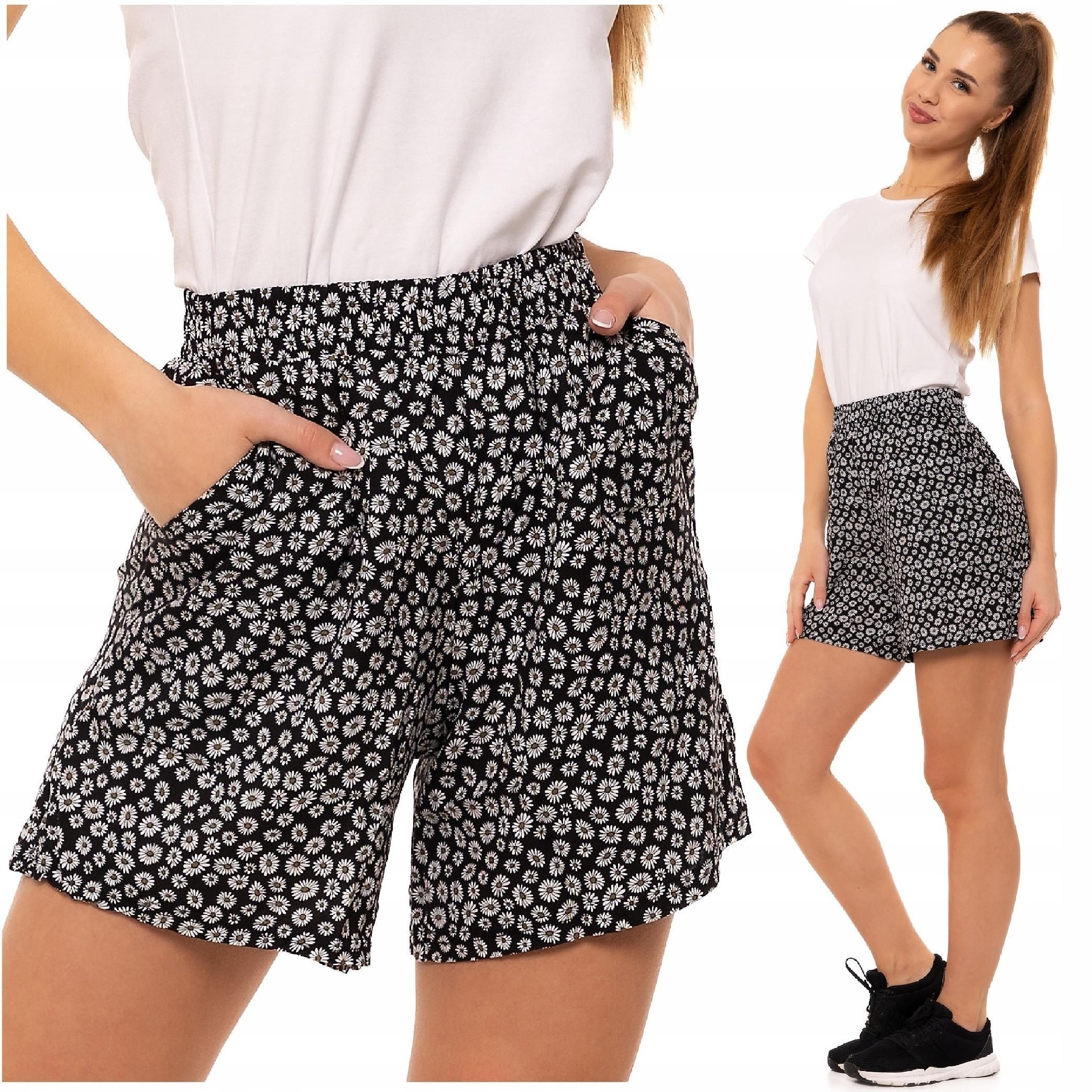 Damskie Szorty Kwiaty Gumka w Pasie Wiskoza Klasyczne Przewiewne MORAJ XXL Kórnik