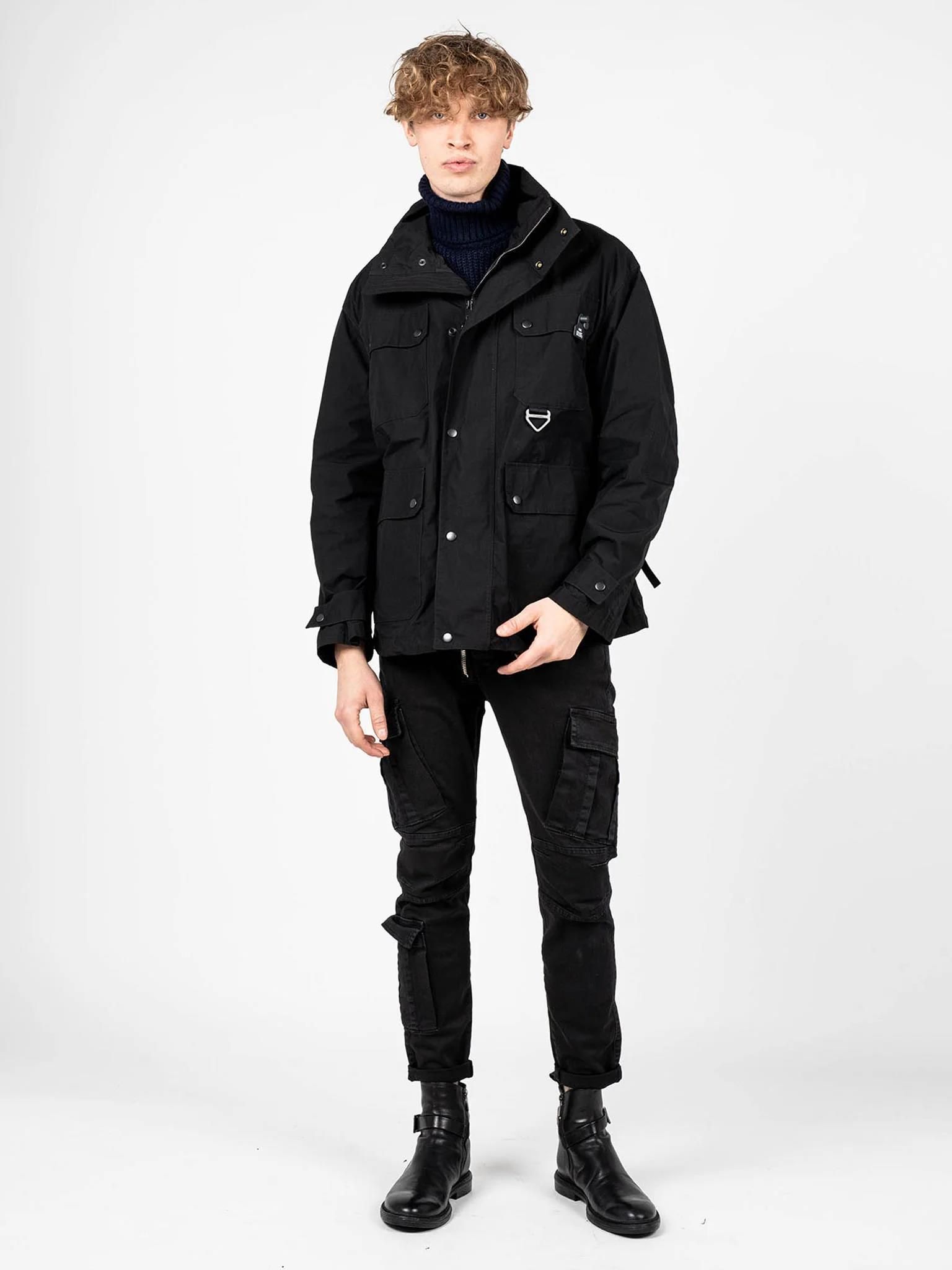 Prosty fason Ze stójką Kaptur schowany w stójce Zapinana na sygnowany zamek błyskawiczny Zamek kryty plisą zapinaną na napy Mankiety z możliwością regulacji Z przodu cztery kieszenie zapinane na napy Po bokach regulacja szerokości Dół z regulacją za pomocą troczka Przy lewej kieszeni firmowe detale …