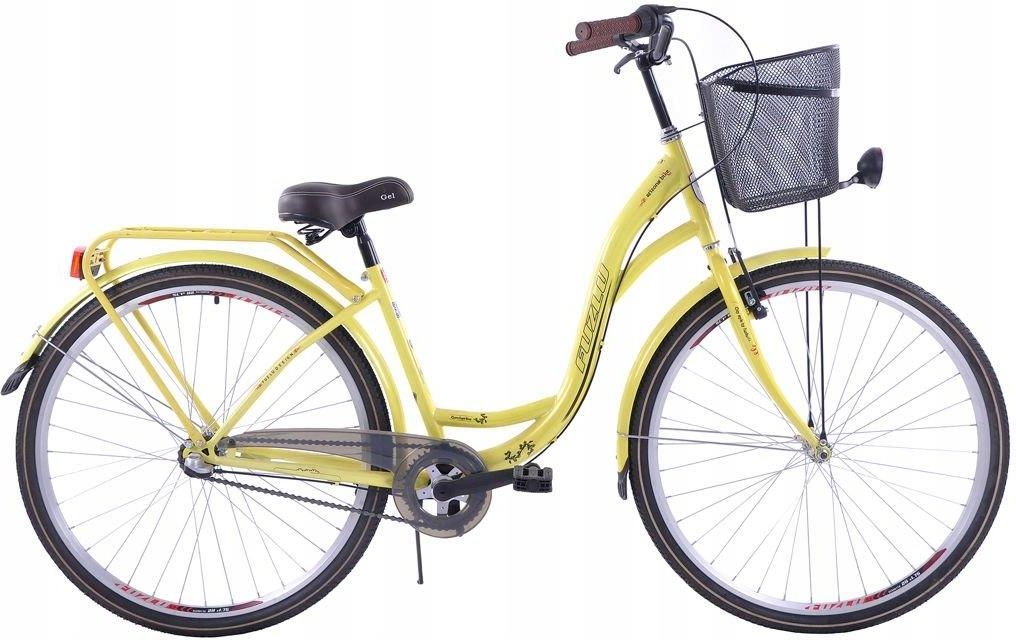 Rower miejski 28 FUZLU ARIZONA limonkowy SPECYFIKACJA Rama: HI-TEN 18" Widelec: sztywny Ilość biegów: 3 Przerzutka tył: Shimano Nexus Hamulec przód: V-Brake Hamulec tył: torpedo Dźwignie hamulca: tworzywo Korba: 1-rzędowa Piasta przód: stalowa Piasta tył: torpedo Opony: 28x1,75 Obręcze: Fuzlu S2 aluminiowe 6061T6 wzmacniane Kierownica: Fuzlu retro Wspornik kierownicy: stalowy Wspornik siodła: stalowy Siodło: Fuzlu Gel sprężyny Chwyty: guma Pedały: Fuzlu tworzywo Wyposażenie: oświetlenie przód, tył, bagażnik w kolorze czarnym , osłona łańcucha, podpórka, dzwonek, kosz Producent zastrzega sobie zmiany w specyfikacji Rower standardowo wysyłany jest w 80% złożony. Do przykręcenia pozostają jedynie: przednie koło, pedały, kierownica oraz siodełko i koszyk. Istnieje możliwość zamówienia roweru w wersji złożonej* - na kołach *Do przykręcenia pozostaną wtedy jedynie pedały oraz kierownica i koszyk. NALEŻY WYBRAĆ - KURIER DHL - W OPCJACH DOSTAWY.