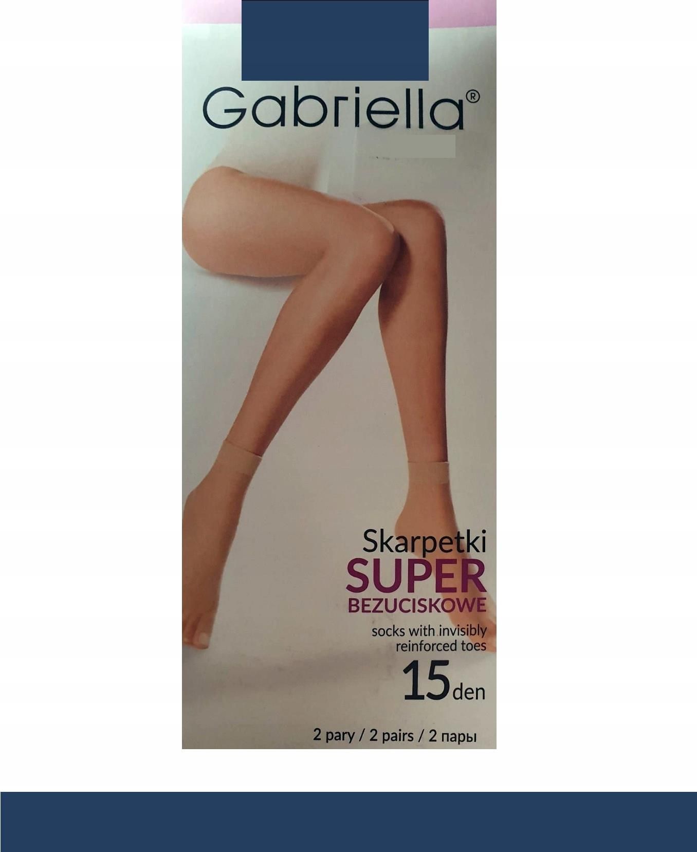 GABRIELLA Skarpetki Super Bezuciskowe 15 k.:NAVY r.: UNI Eleganckie, gładkie skarpetki damskie. Transparentne, matowe, wykonane z najwyższej jakości przędzy typu Lycra. Bezuciskowy ściągacz zapewnia komfort noszenia. Niewidocznie wzmocniona część palcowa pozwala nosić skarpetki z dowolnym obuwiem. Dostępne w wielu wariantach kolorystycznych. Rozmiar uniwersalny. W opakowaniu 2 pary. Grubość 15 DEN. Skład: 90% poliamid, 10% elastan. Długość stopy 23-27. Polecamy nasze pozostałe ogłoszenia! Wszystkie nasze produkty są nowe z oficjalnego kanału dystrybucji producenta. Oryginalnie zapakowanych produktów nie otwieramy, nie weryfikujemy poprawności kompletacji towaru przez producenta. Staramy się, aby byli Państwo maksymalnie zadowoleni zarówno z produktów jak i z poziomu obsługi. Nasze przesyłki pakowane są w foliopaki - jeśli chcesz otrzymać idealne, nienaruszone podczas transportu opakowanie wybierz opcje dodatkową - "Pakowanie na prezent". Zapewni to radość z opakowania nieuszkodzonego przez kuriera.
