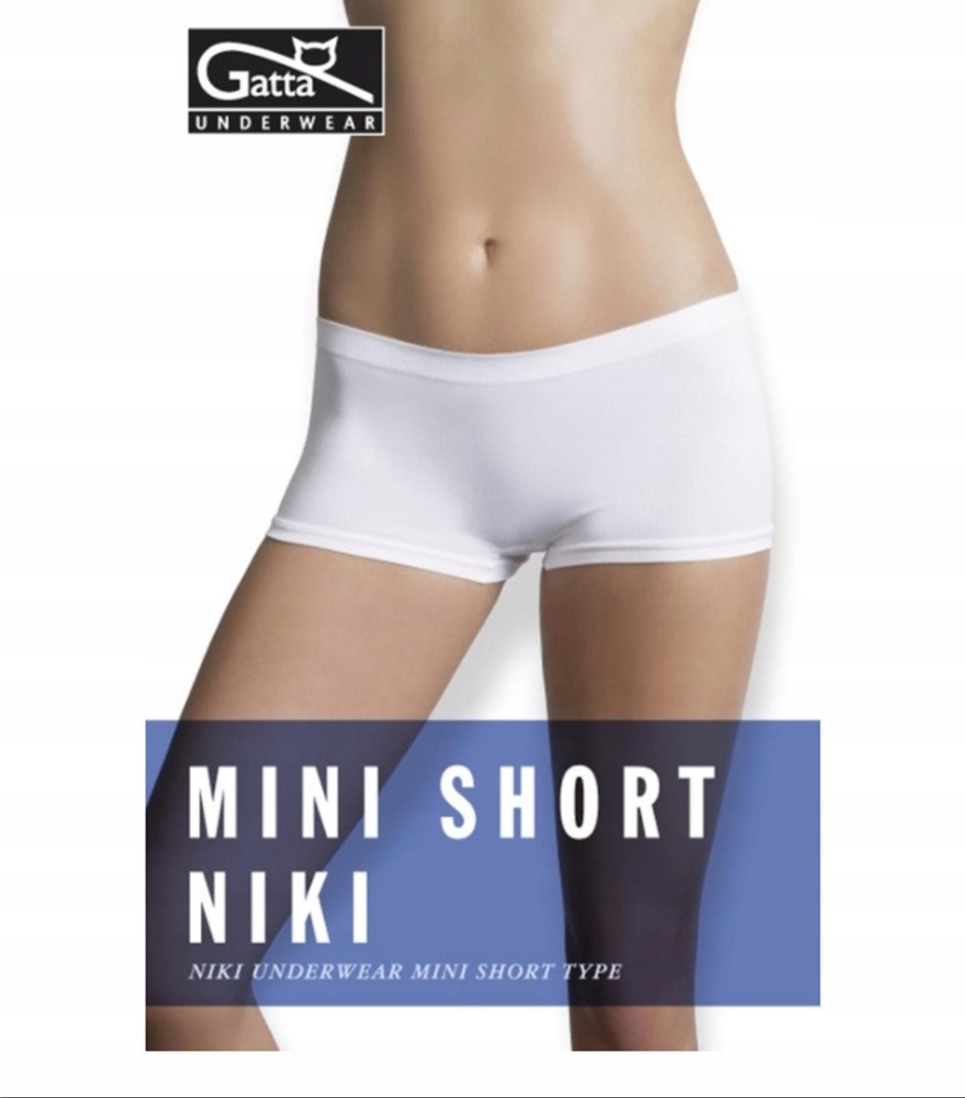 GATTA Majtki Mini Short Niki L/Black Klasyczne mini shorty Niki to gładkie, zabudowane damskie majtki typu biodrówki wykonane w technologii bezszwowej z przewiewnej, elastycznej dzianiny. Higieniczny klin z przędzy z dodatkiem włókna Meryl Skinlife wzbogaconego jonami srebra działa antybakteryjnie i antyalergicznie, zapewniając komfort noszenia oraz uczucie świeżości przez cały dzień. Majtki dostępne są w kolorach: białym, beżowym oraz czarnym. Skład: 91% poliamid, 7% elastan, 2%bodyfresh. Polecamy nasze pozostałe ogłoszenia! Wszystkie nasze produkty są nowe z oficjalnego kanału dystrybucji producenta. Oryginalnie zapakowanych produktów nie otwieramy, nie weryfikujemy poprawności kompletacji towaru przez producenta. Staramy się, aby byli Państwo maksymalnie zadowoleni zarówno z produktów jak i z poziomu obsługi. Nasze przesyłki pakowane są w foliopaki - jeśli chcesz otrzymać idealne, nienaruszone podczas transportu opakowanie wybierz opcje dodatkową - "Pakowanie na prezent". Zapewni to radość z opakowania nieuszkodzonego przez kuriera.