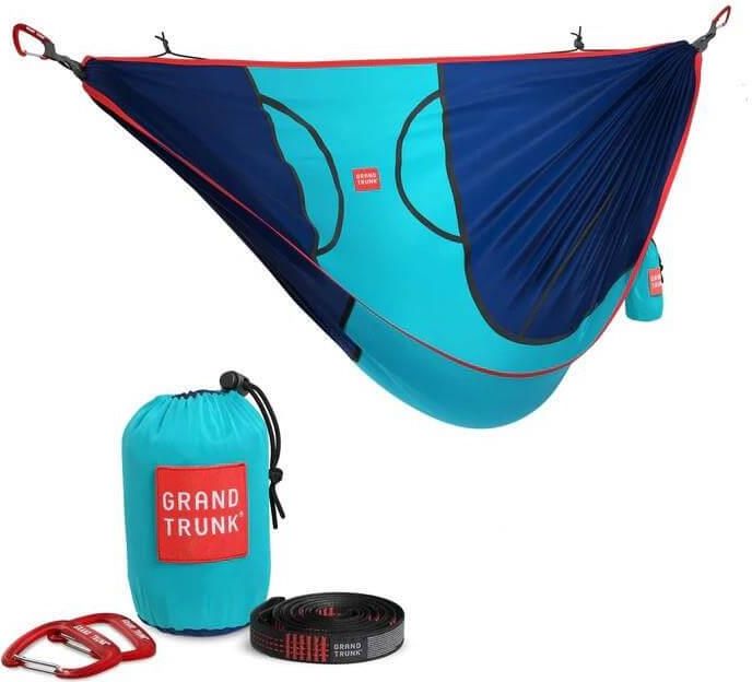 Grand Trunk Wiszące krzesło ROVR Niebieskie Prosty, wytrzymały i jakże odprężający ROVR jest lekki, mały po spakowaniu a rozwieszenie trwa tylko chwilę, dlatego tak dobrze sprawdzi się zarówno w ogrodzie jak i w terenie. Zestaw zawiera dwie taśmy do zawieszenia, każda po 3m długości i jest gotowy do zabrania ze sobą i rozwieszenia wszędzie tam, gdzie masz ochotę. Cechy produktu: waga: 510g udźwig: 136 kg materiał: nylon spadochronowy 70D 210T wymiary po rozłożeniu: 1,72cm x 1,45cm wymiary po spakowaniu: 13cm x 13cm x 18cm wygodna, wyprostowana pozycja siedząca wytrzymały materiał oraz szwy łatwy do rozwieszenia i spakowania nie wymaga tyle przestrzeni co hamak