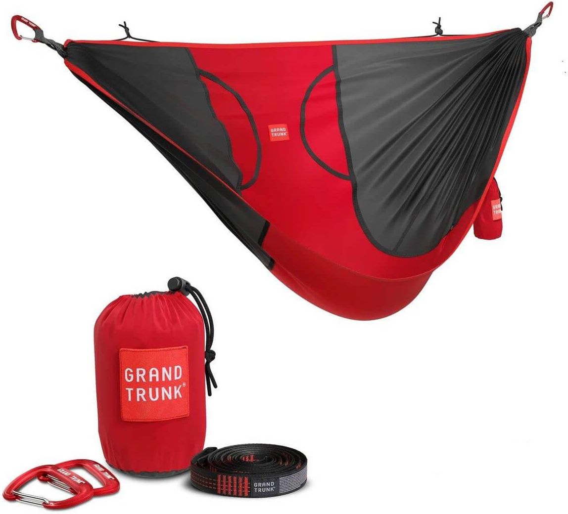 Krzesło wiszące/hamak Rovr Hanging Chair red/crimson Grand Trunk --------------------------------------- Parametry produktu Rodzaj: 1 osobowy kolor: szary, popielaty, bordowy waga [kg]: 0,51 długość [cm]: 172 szerokość [cm]: 145 wymiary po spakowaniu [cm]: 13cm x 13cm x 18cm max. obciążenie [kg]: …