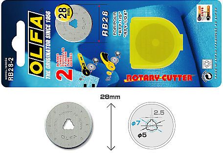 Ostrze model: RB28, to ostrze krążkowe o średnicy 28mm. do noży model: RTY-1/G, RTY-1/DX, OP-1. Szczególnie przydatne do cięcia po liniach łukowych o małym promieniu tkanin, folii, gumy, gąbki i innych wiotkich materiałów - na matach podkładowych OLFA. Dzięki zastosowaniu stali narzędziowej o odpowiednio dobranych parametrach i precyzyjnemu ostrzeniu uzyskano ostrze tnące łatwo, dokładnie i wyjątkowo trwałe. grubość ostrza: 0,3mm; średnica: 28mm. Opakowanie jednostkowe o symbolu: RB28-2, zawiera 2 szt. ostrzy w plastikowym pudełku na blistrze.