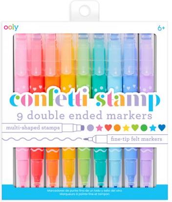 Flamastry dwustronne ze stempelkami Confetti Stamp Ooly __________________________________________________________________ Celebruj swoją twórczość dzięki temu zabawnemu zestawowi markerów! Te urocze mazaki pozwolą Ci rysować, kolorować i stemplować! Jedną końcówką narysuj lub napisz coś zabawnego, …