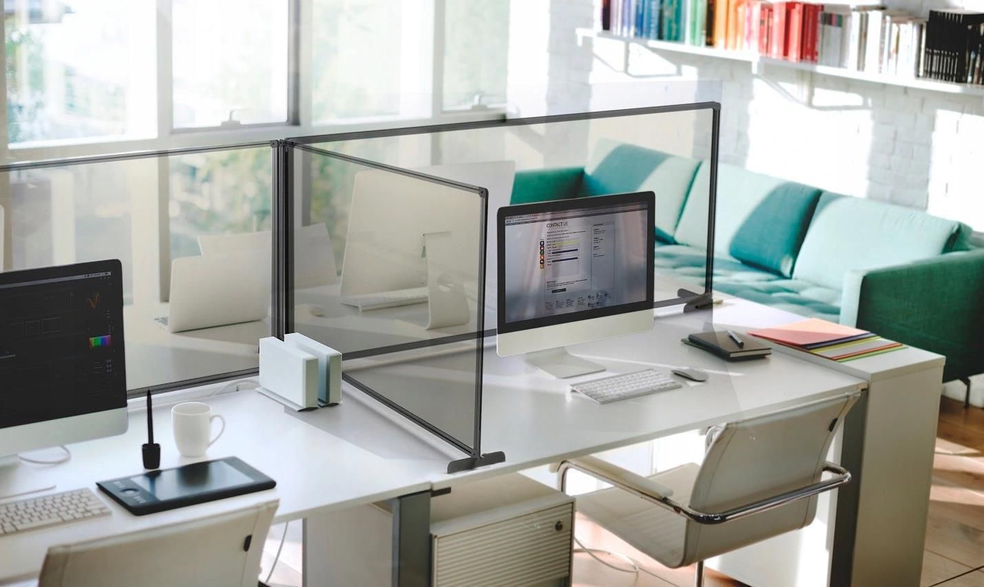 Osłona ochronna z pleksi w ramie aluminiowej na ladę i biurko- z opcją regulacji wysokości- to niezwykle estetyczne i funkcjonalne rozwiązanie do wydzielania bezpiecznych przestrzeni w biurach, sklepach, restauracjach, bibliotekach, urzędach. – Osłona z pleksi posłuży jako ścianka ochronna przeciwwirusowa oraz jako ścianka działowa wydzielająca stanowiska pracy- zapewniająca widoczność i ochronę – Powierzchnia wykonana z pleksi bezbarwnego o grubości 3 mm osadzonego w ramie anodowanej aluminiowej doskonale usztywniającej powierzchnię osłony. – Pleksi jest w 100% przeźroczysta i bezbarwna – przyciemnienie na zdjęciach służy tylko wizualizacji produktu. – Stabilność osłony zapewnia podstawa wykonana ze stali lakierowanej w kolorze szarym. Kolejnym atutem konstrukcji podstawy jest możliwość osadzenia jej w plastikowej samoprzylepnej podstawce, która pełni rolę dodatkowego stabilizatora dla osłony bez potrzeby wiercenia otworów na powierzchniach płaskich. – Projekt konstrukcji umożliwia ustawienie zarówno jednej części osłony jak i rozbudowę wielu modułów w szeregu lub pod kątem. – Wolna przestrzeń pozostawiona między osłoną a biurkiem standardowo wynosi 5 cm – dodatkowym atutem konstrukcji podstawy jest możliwość regulacji wysokości osłony do 12 cm, co umożliwia dostosowanie jej do indywidualnych potrzeb użytkownika. Dodatkowo wprowadzone rozwiązanie aluminiowych profili pozwala na rozszerzenie funkcjonalności osłon o kolejne ścianki osadzając w nich np. tablice z powierzchnią suchościeralną magnetyczną, korkową lub kredową. Dzięki temu uzyskujemy powierzchnię na której można pisać markerami lub umieścić niezbędne informacje i ogłoszenia dla klientów. Jeśli będą Państwo zainteresowani budową ścianek z dodatkowymi powierzchniami suchościeralnymi, korkowymi czy kredowymi, prosimy o kontakt z naszym działem handlowym origo@origo.poznan.pl – pomożemy dobrać odpowiednie tablice – tak by stanowiły spójną całość z osłonami ochronnymi. Osłony dostępne do wyczerpania zapasów ! Opcja regulacji wysokości w wymiarach osłon: 60x65cm, 80×60 cm, 90×60 cm, 100×65 cm, 100×80 cm, 120×90 cm, 125×50 cm, 150×60 cm Osłona ochronna przeznaczona jest do umieszczenia na ladzie lub na biurku. Zapewnia bezpieczeństwo pracowników w miejscu pracy i klientom w sklepie, w aptece, w szpitalu, w biurze lub w innych punktach usługowych. Oferowane rozwiązania mają za zadanie przeciwdziałać rozprzestrzenianiu się bakterii i wirusów. Aby zachować wysoką jakość produktu i utrzymać osłonę w czystości należy jej powierzchnię czyścić za pomocą miękkiej ściereczki i czystej wody z mydłem lub płynem (bez alkoholu). Ten rodzaj osłon ochronnych występuje również w wersji bez regulacji wysokości. Jeśli nie potrzebujesz regulacji wysokości ścianek ochronnych, wybierz osłony tutaj.